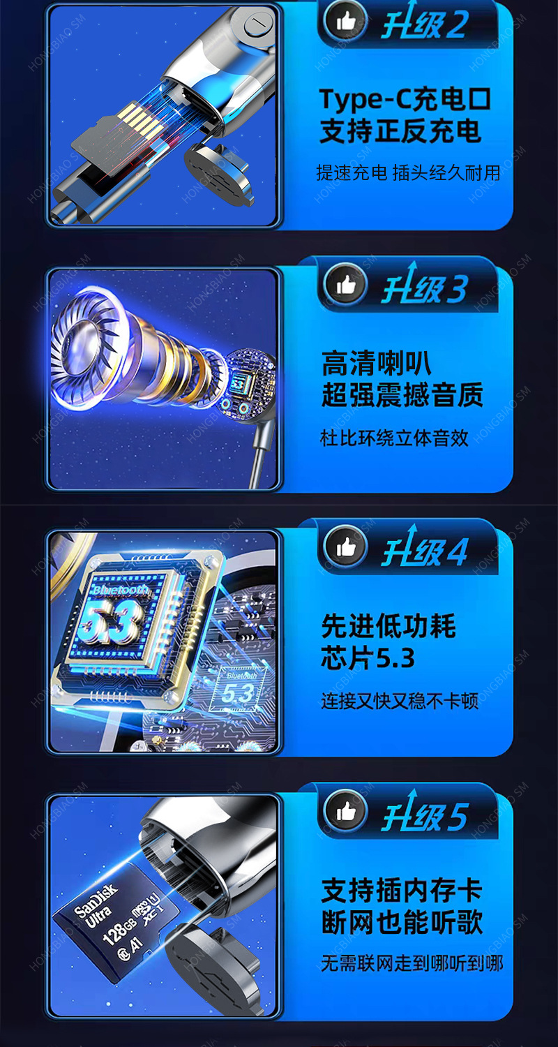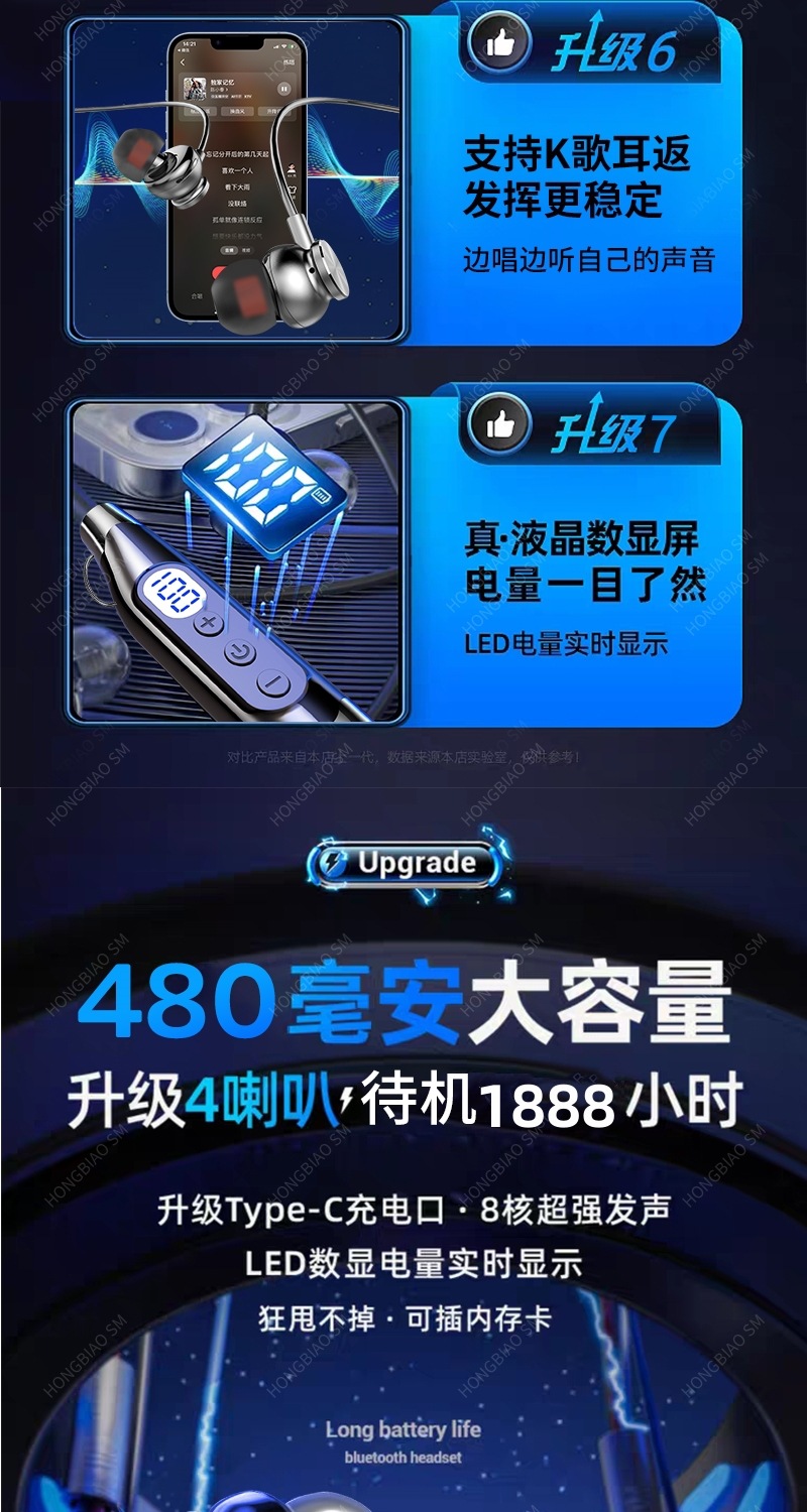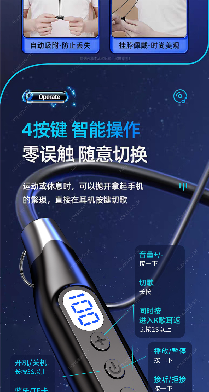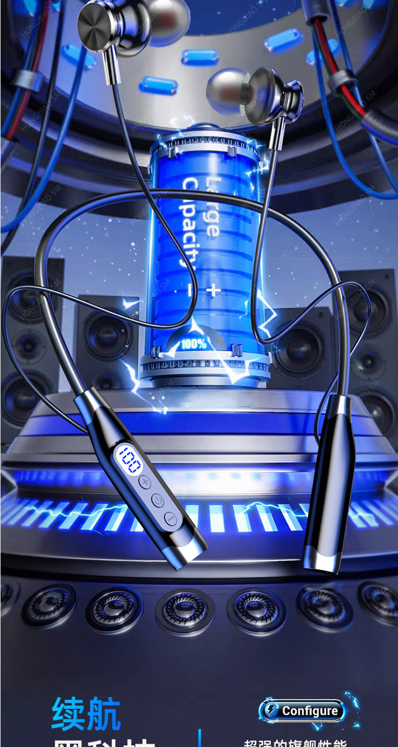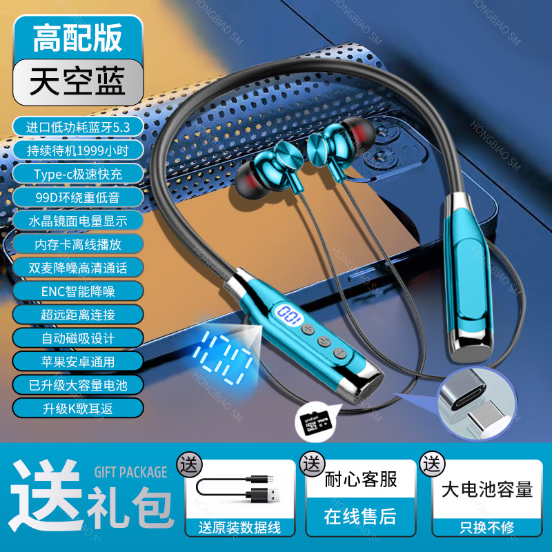 Apple Huawei Xiaomi Hanging Neck 디지털 디스플레이 스포츠 소음 감소 헤드셋에 적합한 Bluetooth 헤드셋 유선 초장기 대기