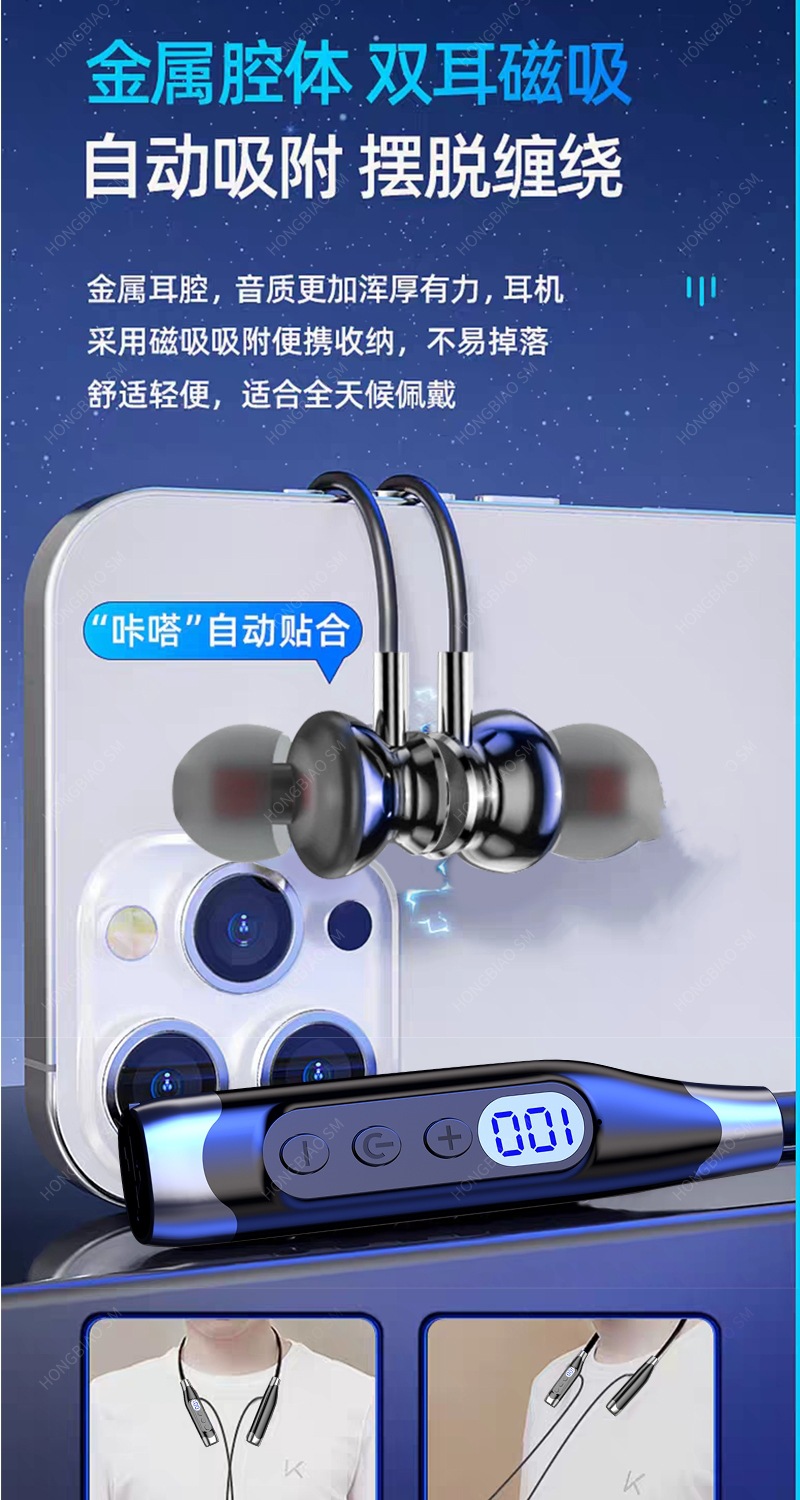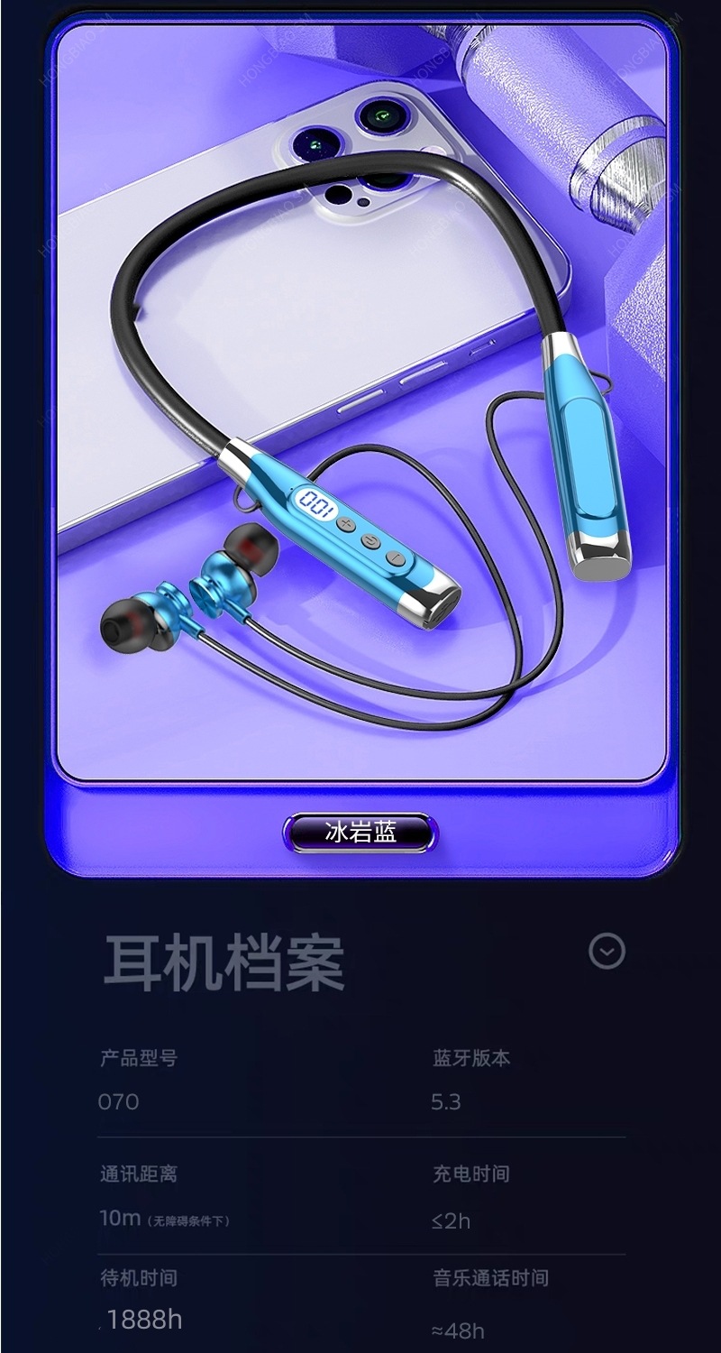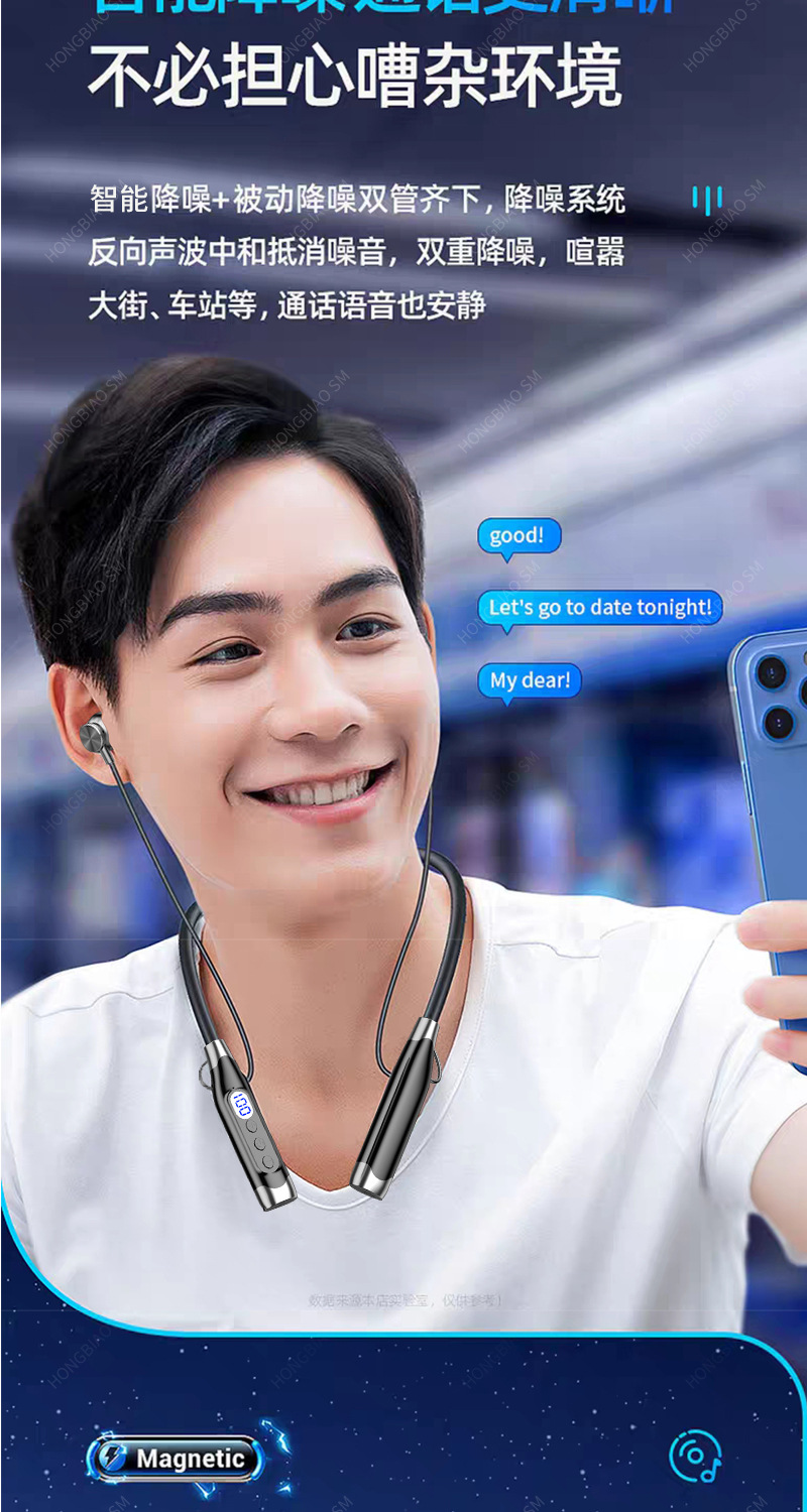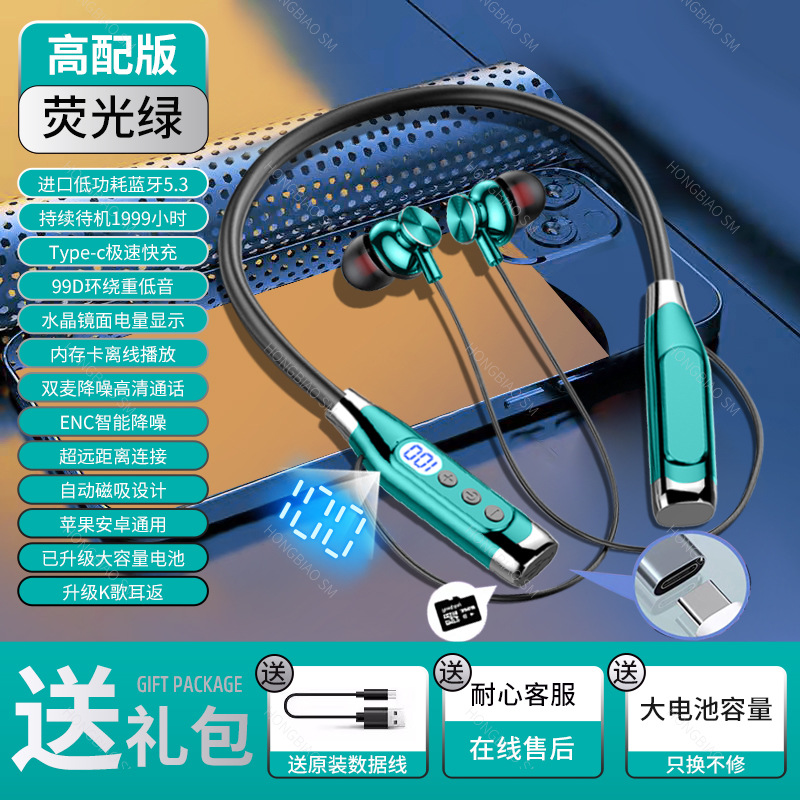 Apple Huawei Xiaomi Hanging Neck 디지털 디스플레이 스포츠 소음 감소 헤드셋에 적합한 Bluetooth 헤드셋 유선 초장기 대기스토어 가기