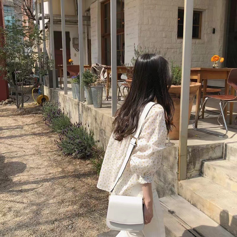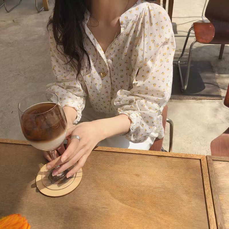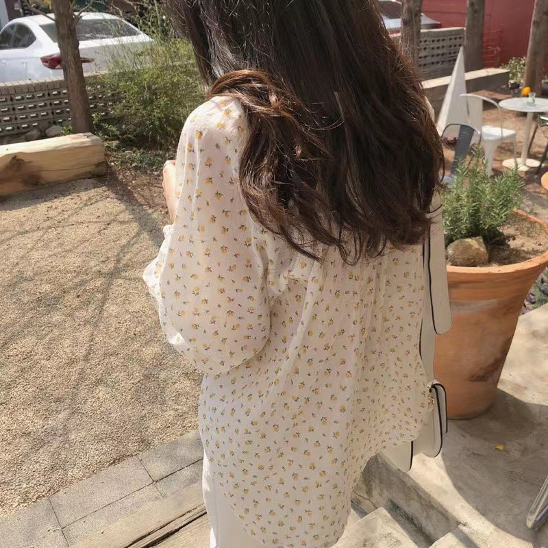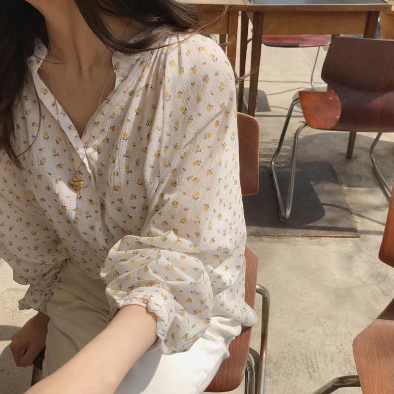 가을 의류 2025 새로운 프랑스어 쇄골 v 넥 꽃 탑 쉬폰 셔츠 긴팔 셔츠 디자인 틈새 여성스토어 가기