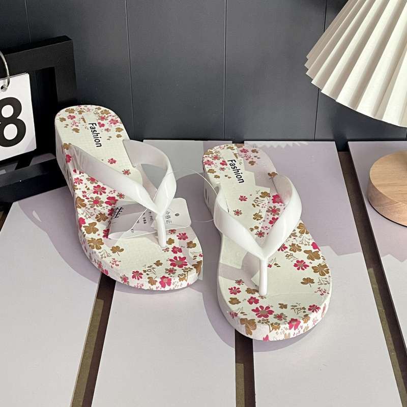 여성용 프린트 슬리퍼, 여름용 달콤한 슬리퍼, 미끄럼 방지 꽃무늬 웨지힐 샌들, 여성용 아우터웨어, 해변 학생용 비치 슈즈스토어 가기