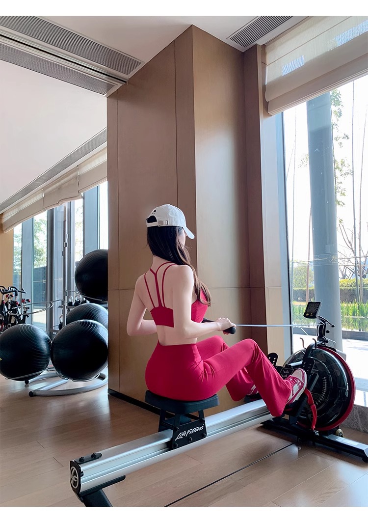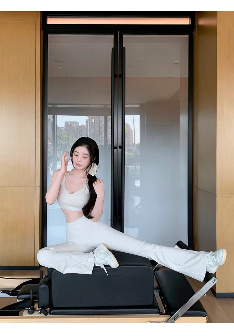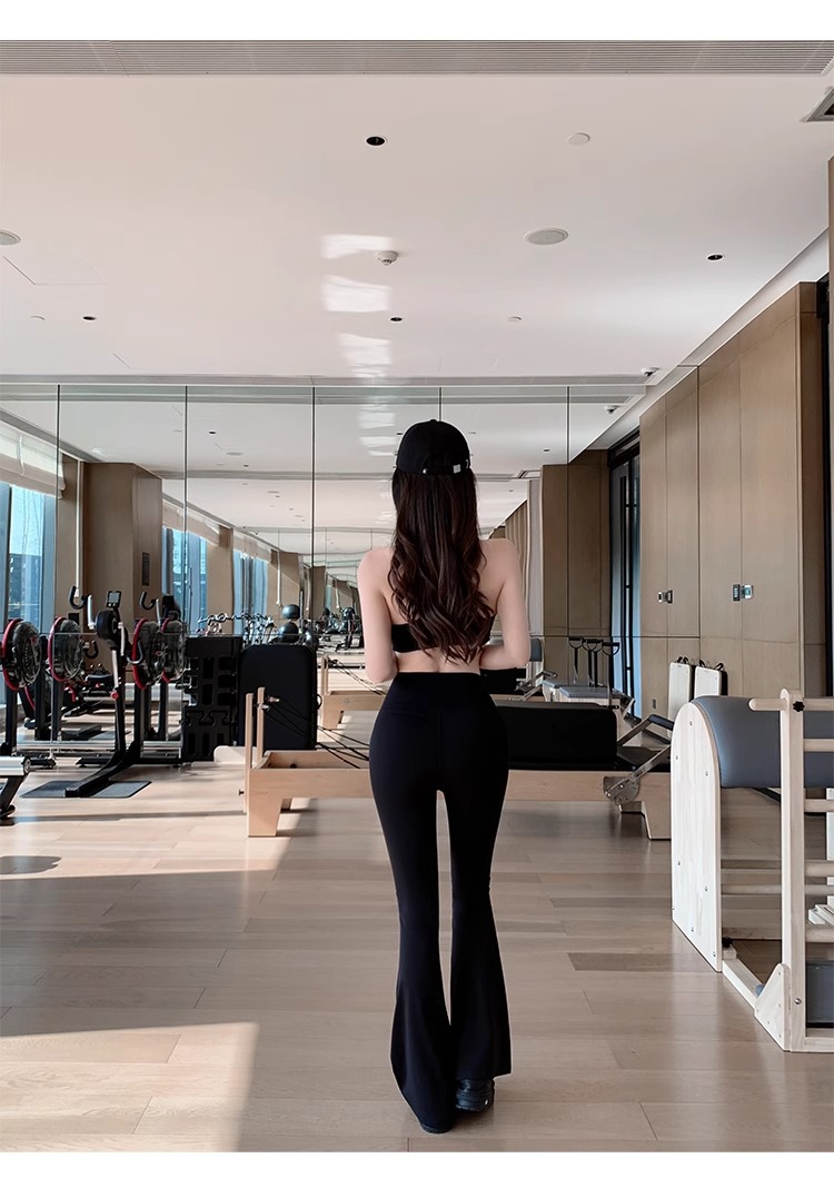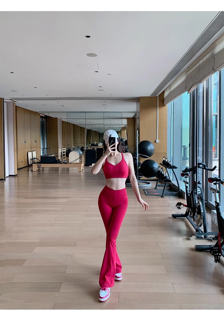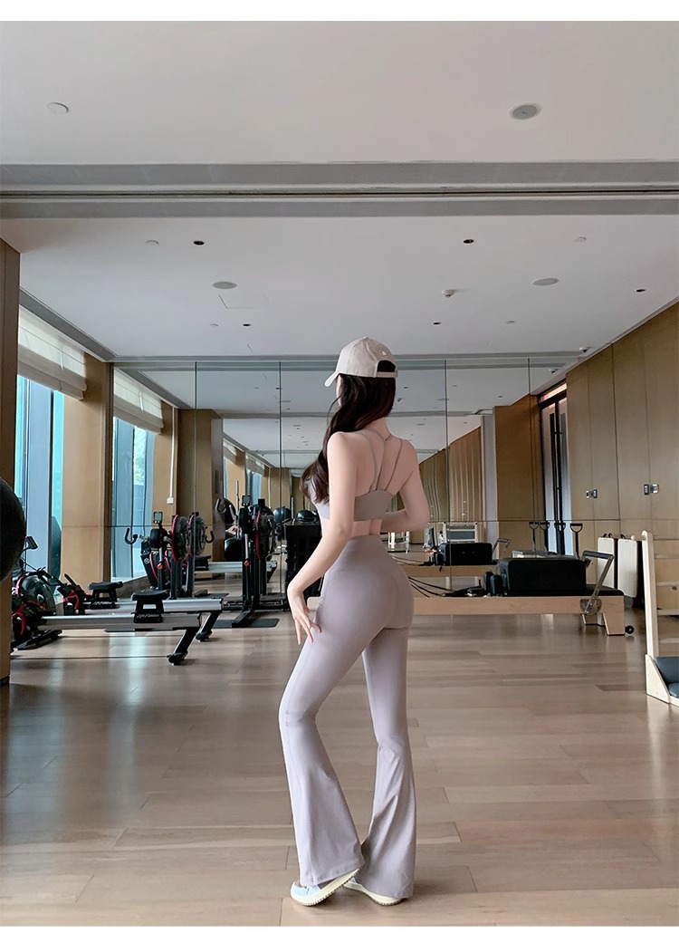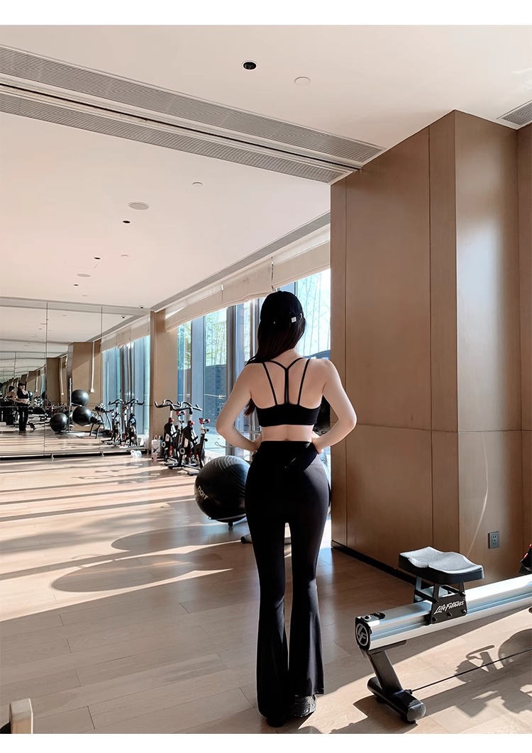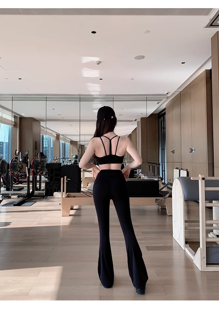 여성용 신형 요가복 세트, 충격 방지 필라테스 트레이닝 조끼, 하이웨이스트 힙업 플레어 팬츠 투피스 세트스토어 가기
