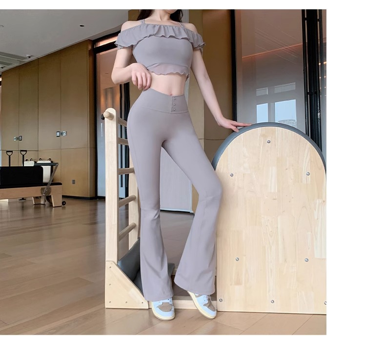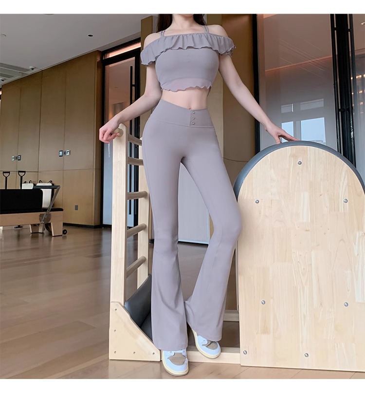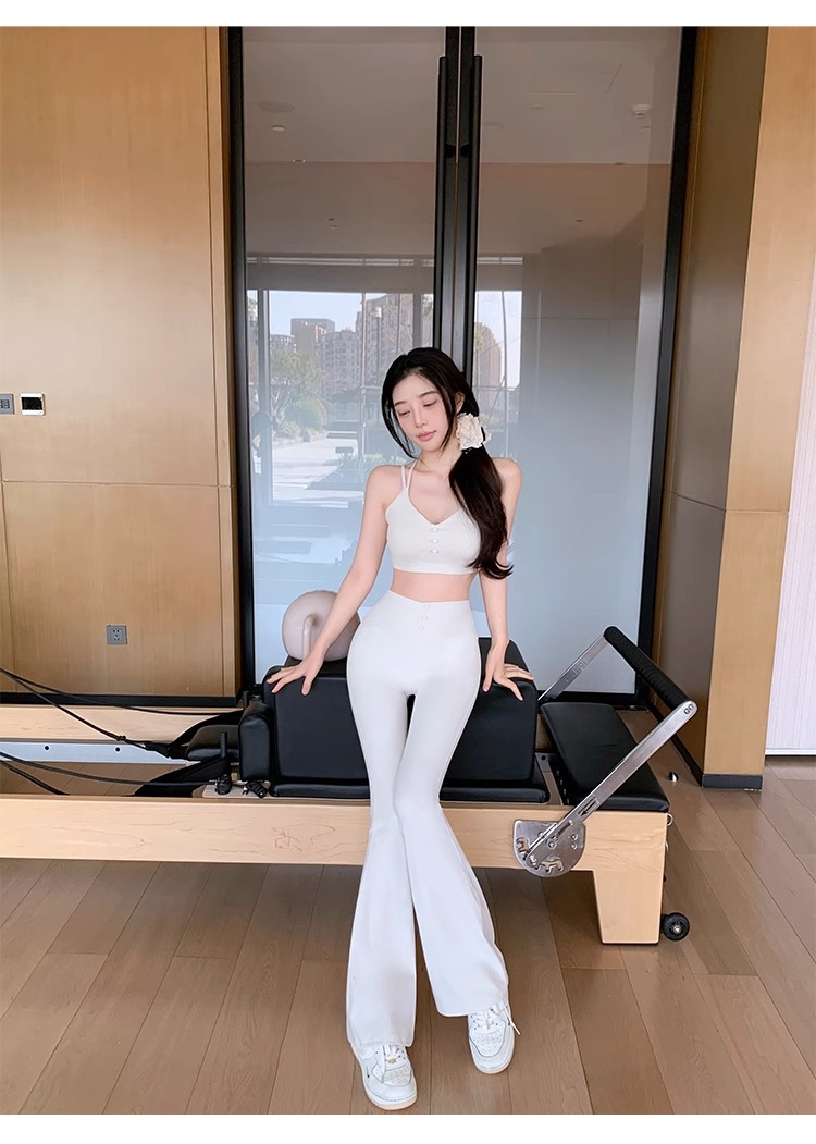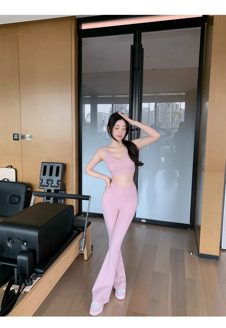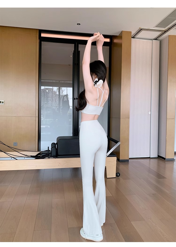 여성용 신형 요가복 세트, 충격 방지 필라테스 트레이닝 조끼, 하이웨이스트 힙업 플레어 팬츠 투피스 세트