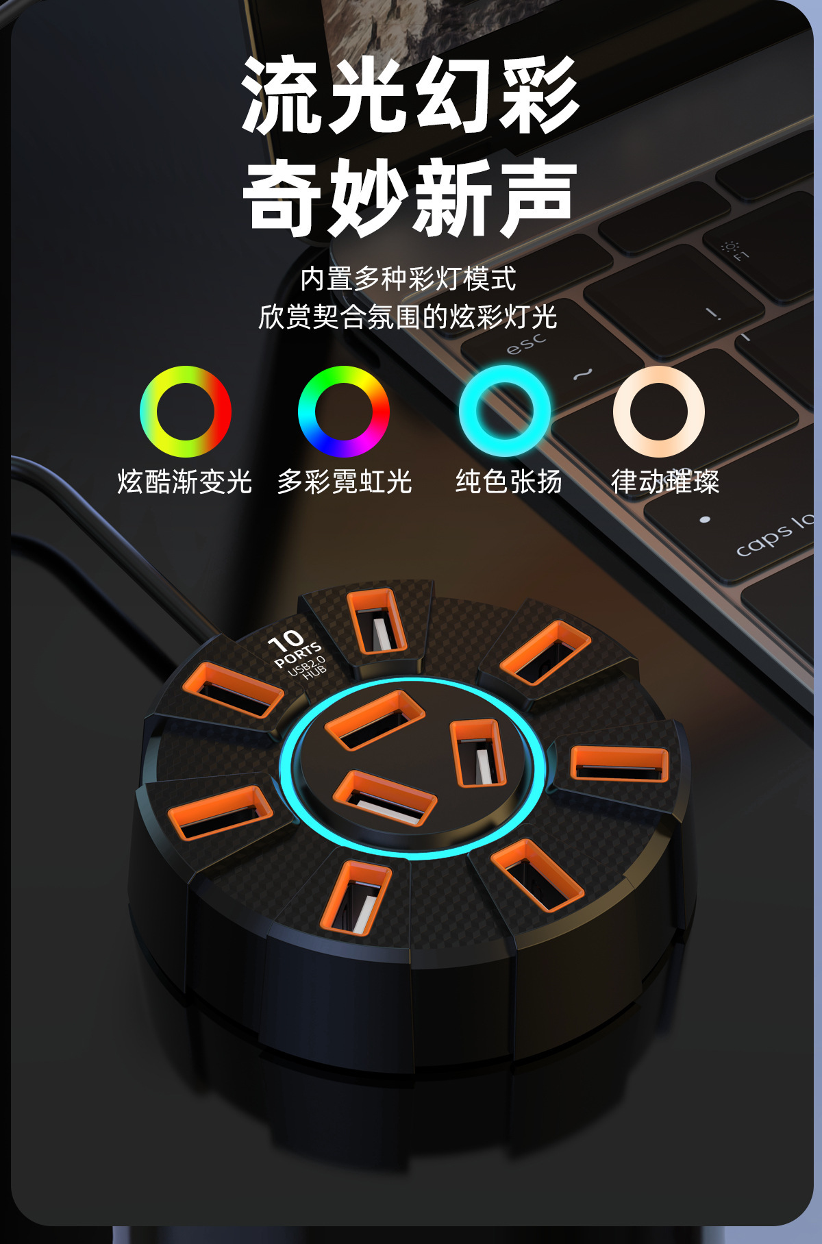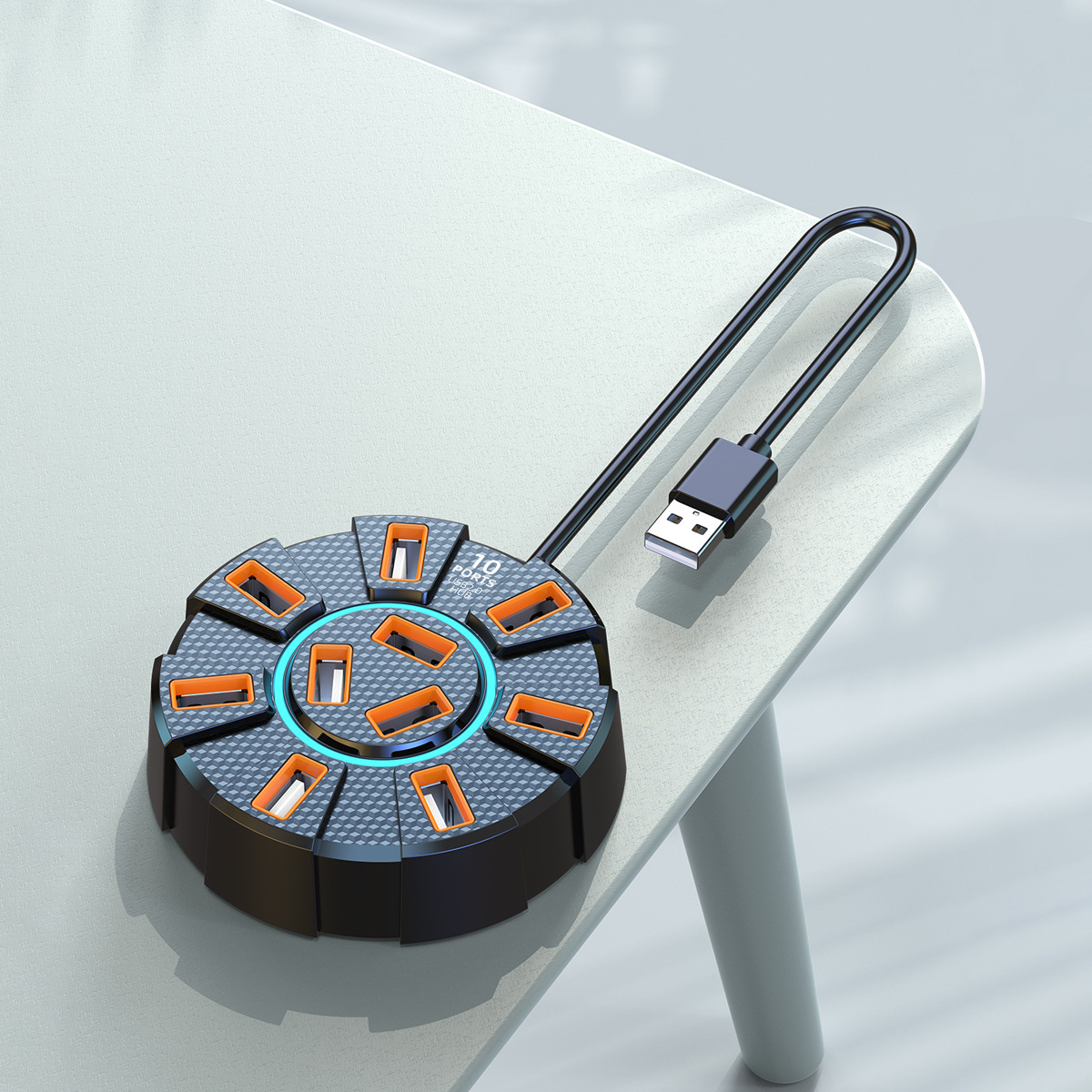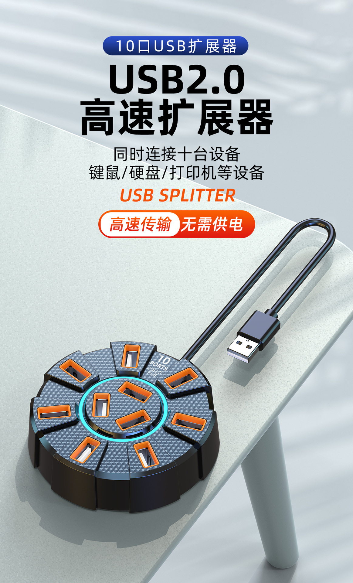 다채로운 눈부심 10포트 USB2.0 분배기 도킹 스테이션 | 독립 전원 공급 장치 포트가 있는 1-10 허브