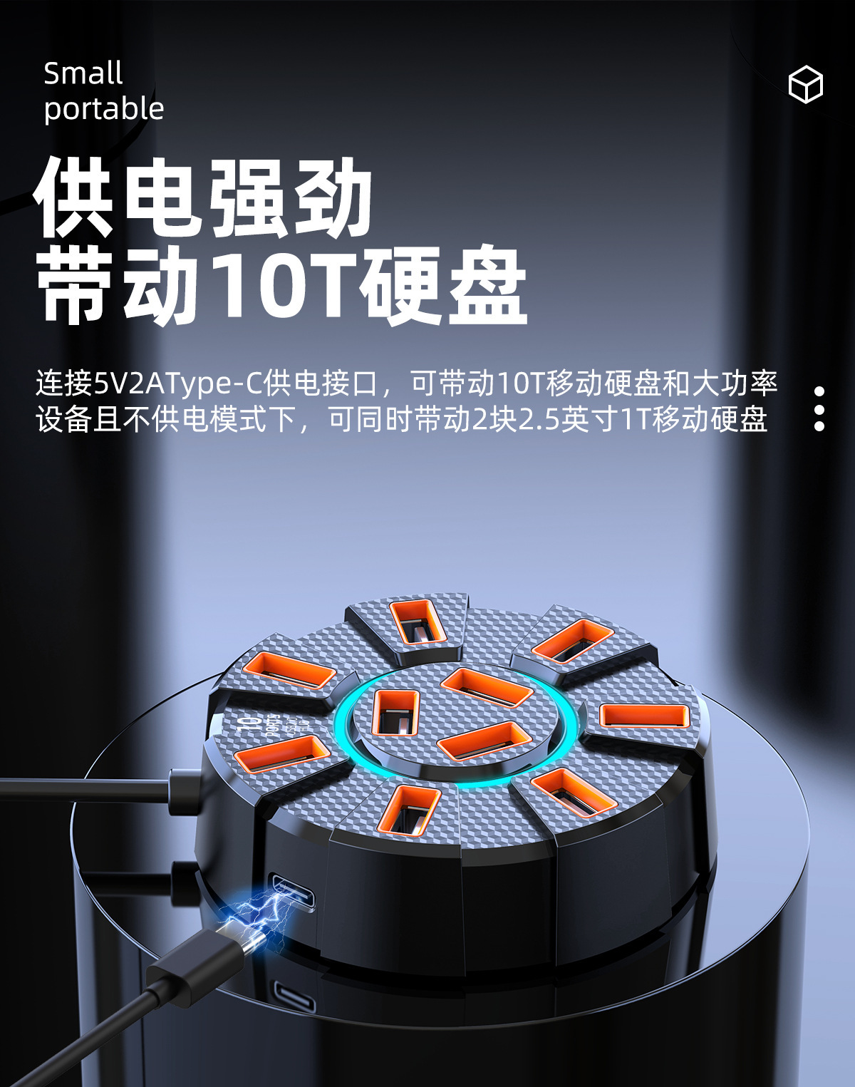 다채로운 눈부심 10포트 USB2.0 분배기 도킹 스테이션 | 독립 전원 공급 장치 포트가 있는 1-10 허브스토어 가기