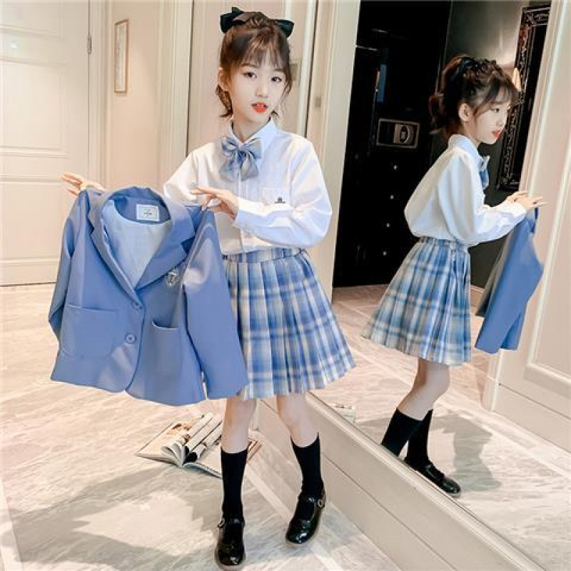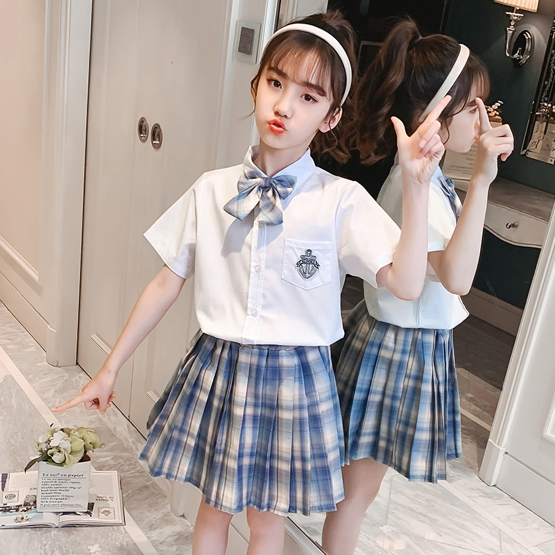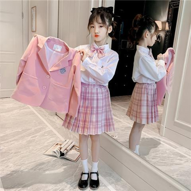여자 여름 드레스 2025 새로운 스커트 어린이 봄, 가을 jk 유니폼 정장 스커트 여자 어린이 짧은 치마 주름 치마스토어 가기