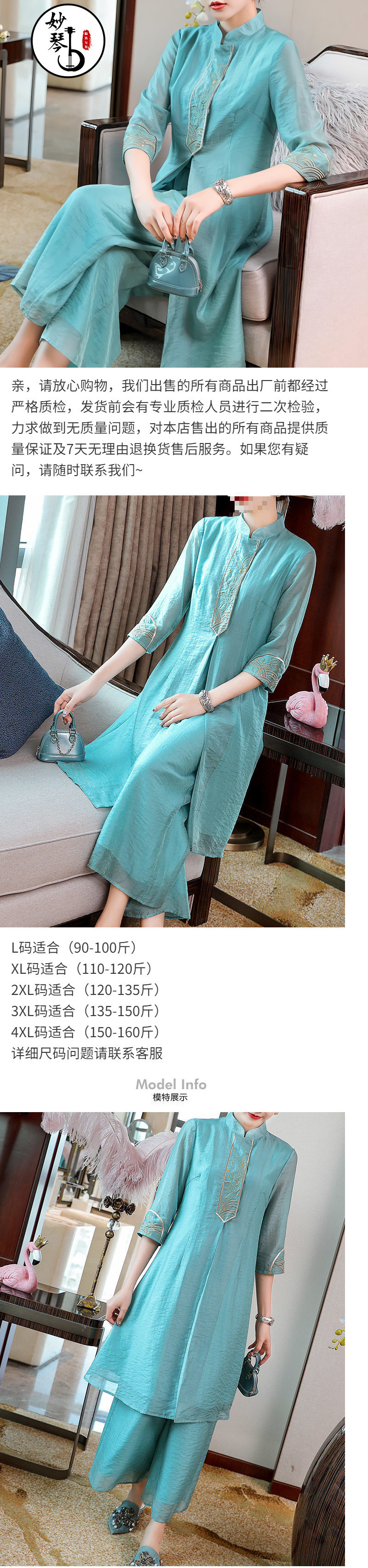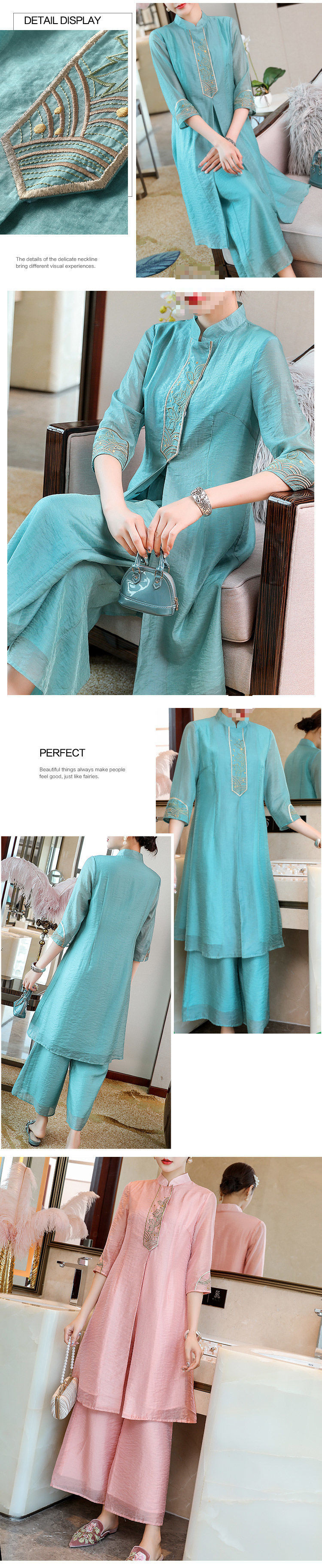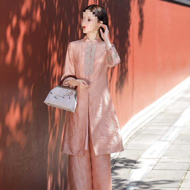 여성을위한 복고풍 민족 스타일 치파오 2021 여름과 가을 새로운 투피스 양복 외국 스타일 엄마 탑 와이드 레그 스커트 정장스토어 가기