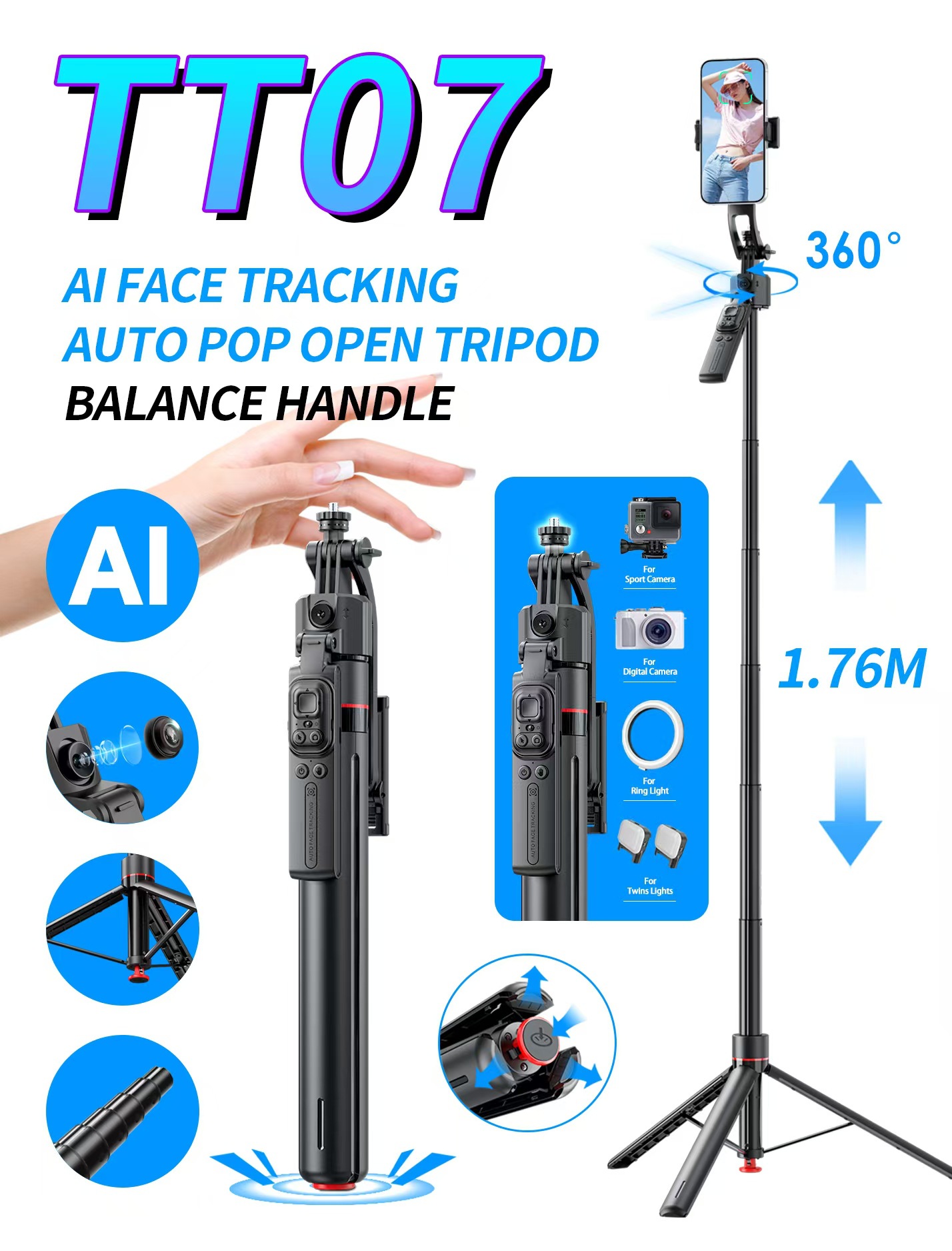 • 【TT07】점핑 폴 1.73m + AI 지능형 추적 + 탈착식 휴대폰 클립