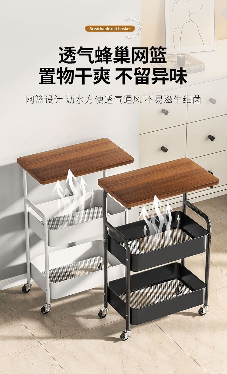 置物架小推车可移动带桌板落地式收纳架家用多功能分层储物收纳架