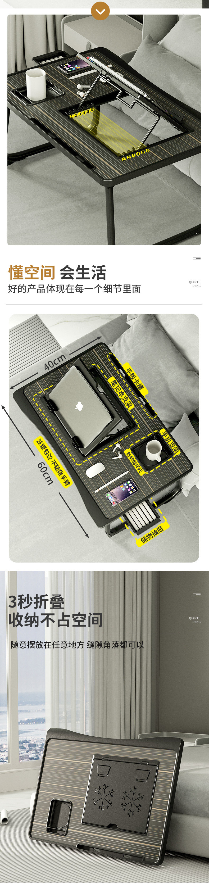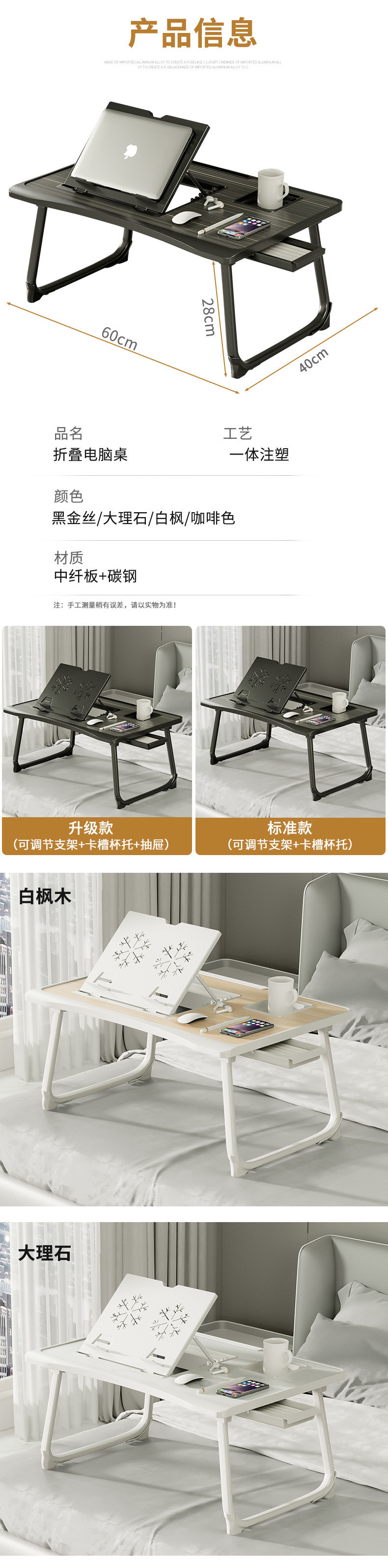침대 컴퓨터 책상 작은 테이블 기숙사 접이식 학습 테이블 플로팅 창 노트북 접이식 게으른 책상스토어 가기