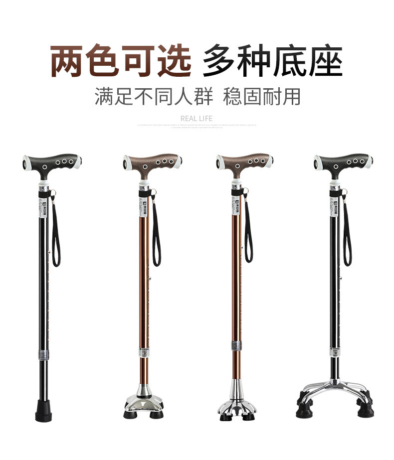 일본 Lelafu 알루미늄 합금 4발 노인용 지팡이, 미끄럼 방지 경량 마사지 지팡이, 조명 지팡이가 있는 텔레스코픽 지팡이스토어 가기