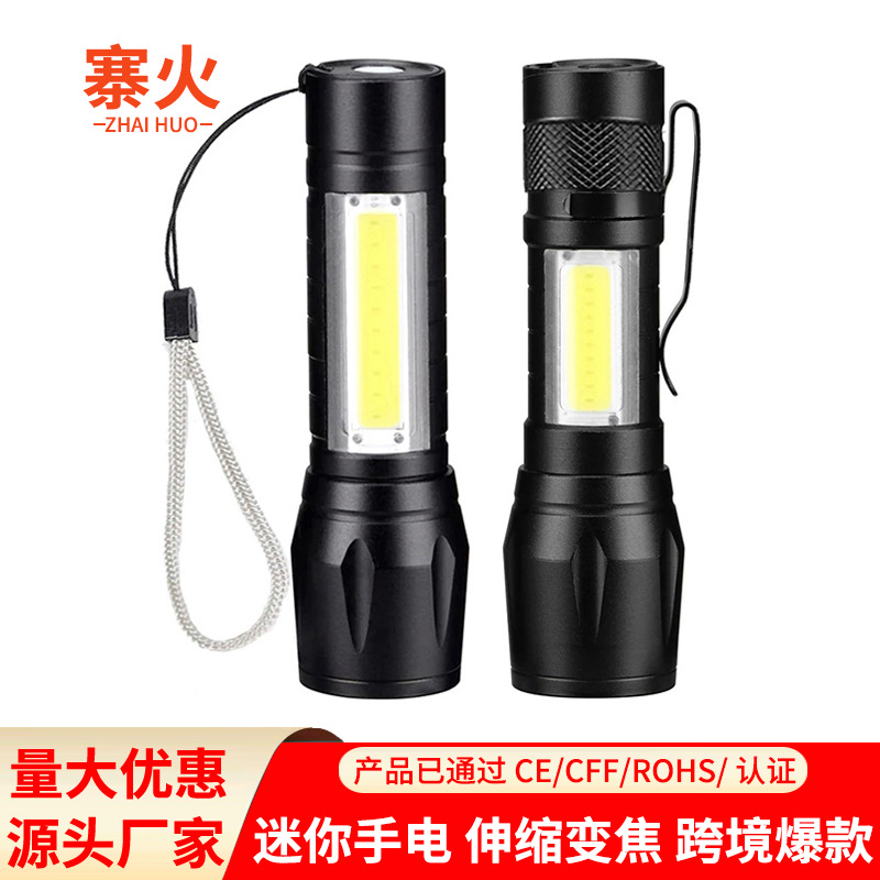 LED 미니 손전등 강한 빛 충전식 긴 배터리 수명 야외 휴대용 다기능 줌 비상 cob 작업 조명스토어 가기