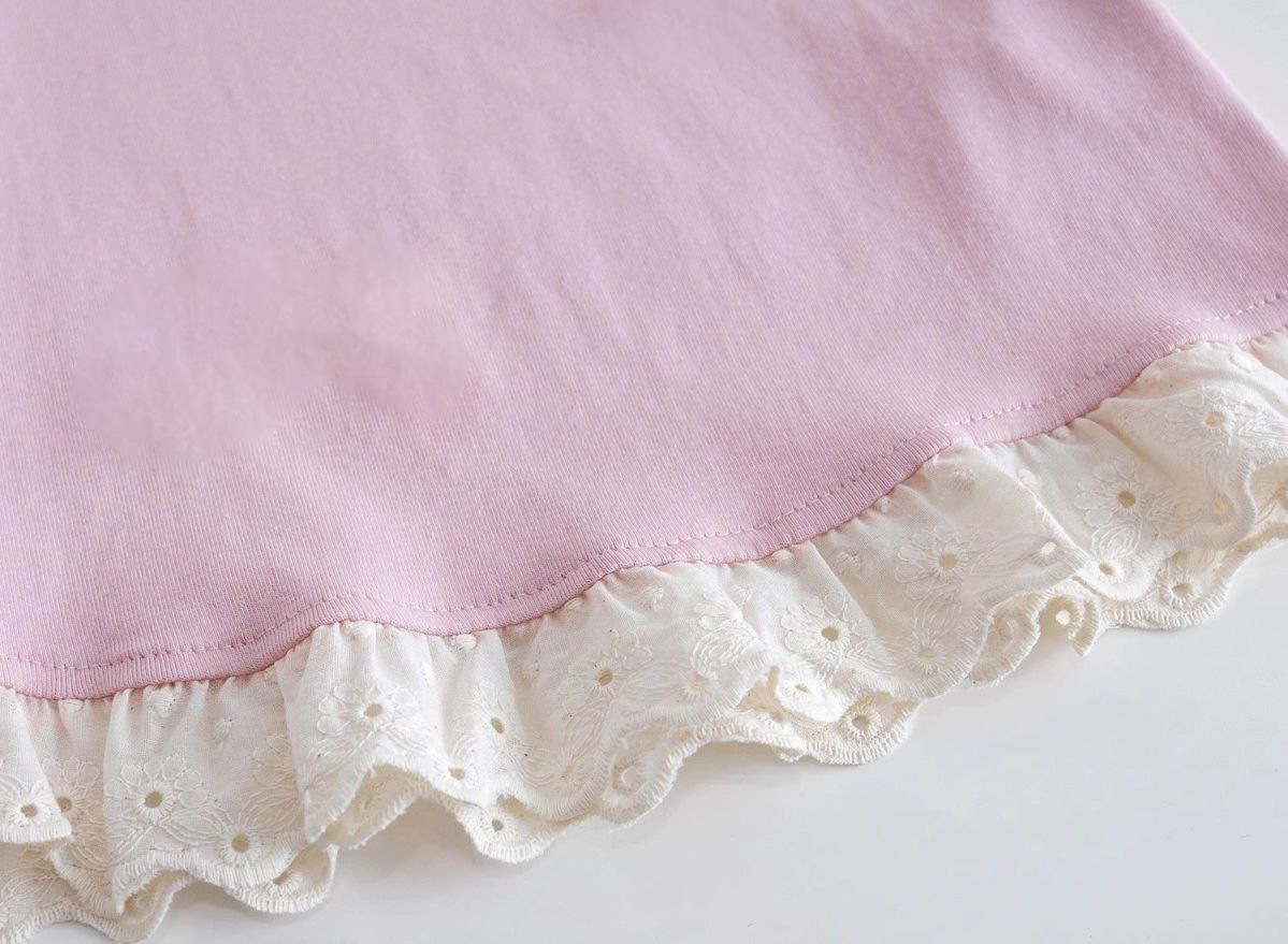 2025년 여름 새로운 스타일의 만화 달콤하고 세련된 프린트 여아 베이비 아동 레이스 반팔 티셔츠 탑 아우터 t