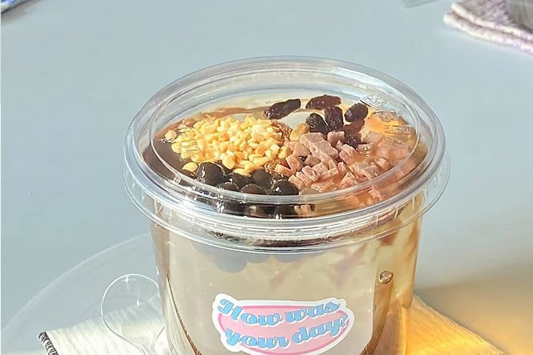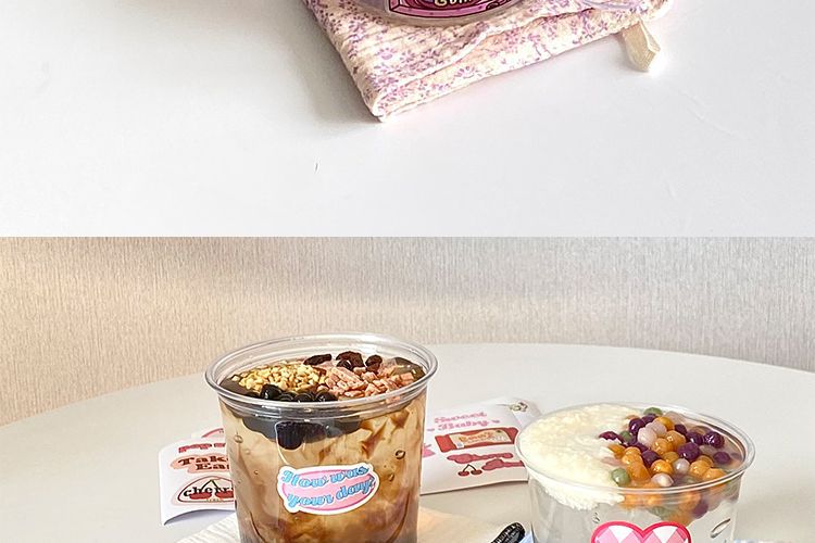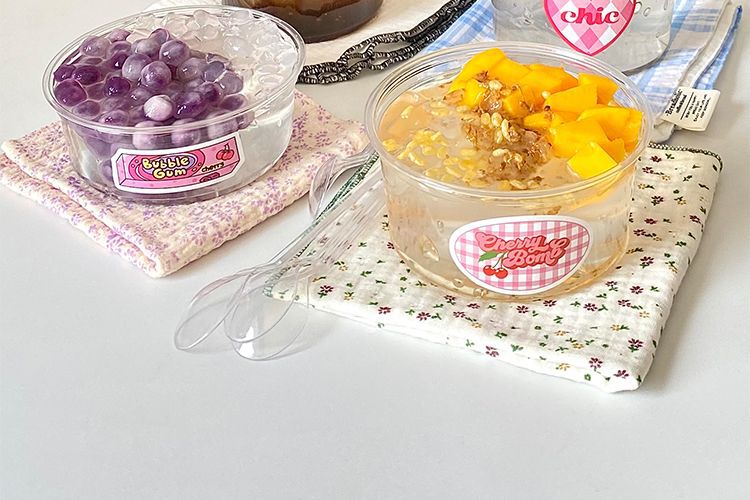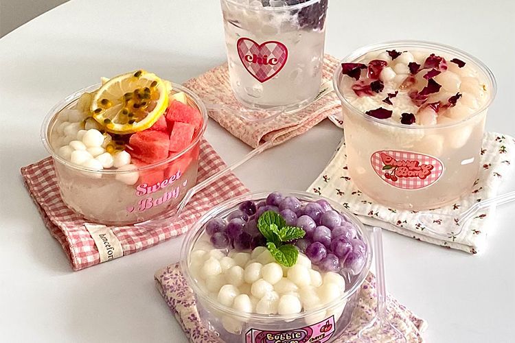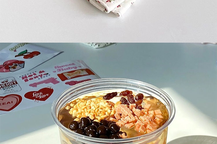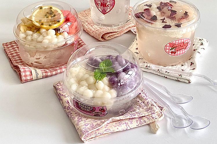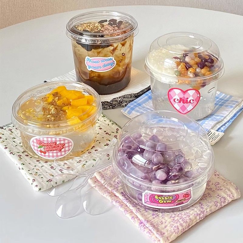 빨간색 얼음 분말 그릇, 고급스러운 차가운 음료 우유 컵, 상업용 코코넛 밀크 젤리 두부 포장 상자스토어 가기