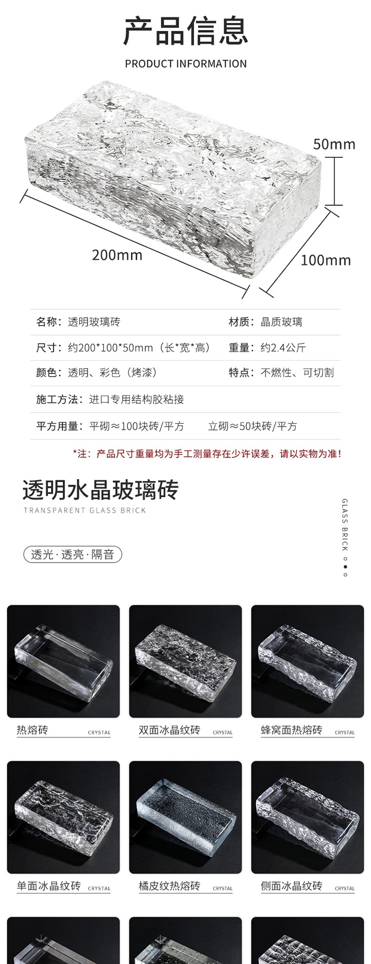 초백색 단단한 크리스탈 유리 벽돌 투명 사각형 인터넷 연예인 크리스탈 벽돌 칸막이 벽 욕실 컬러 칸막이 벽돌스토어 가기