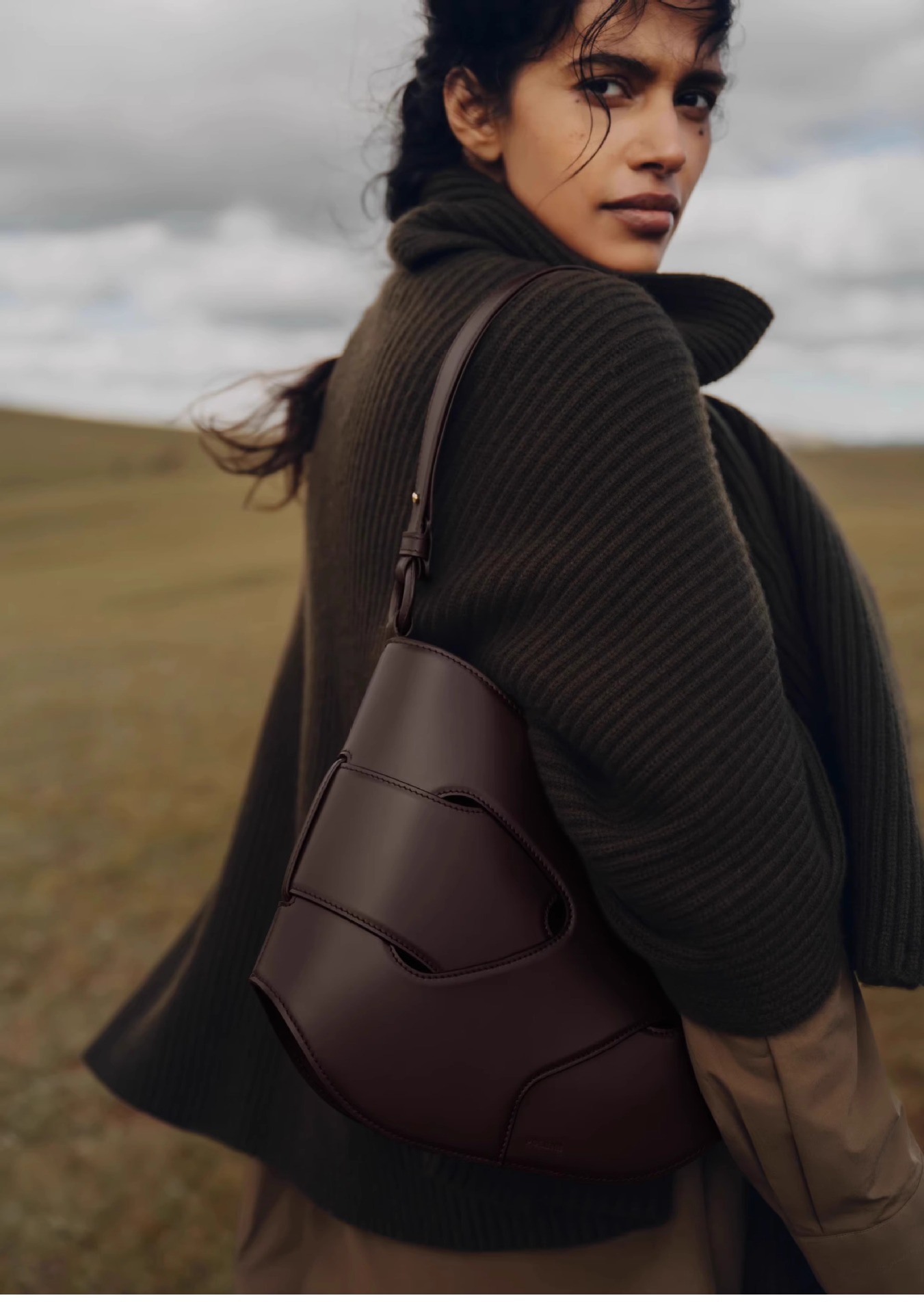 대외 무역 Polene 트위스트 백 Polene Nodde Hobo 부드러운 소가죽 트위스트 백 휴대용 크로스 바디 백
