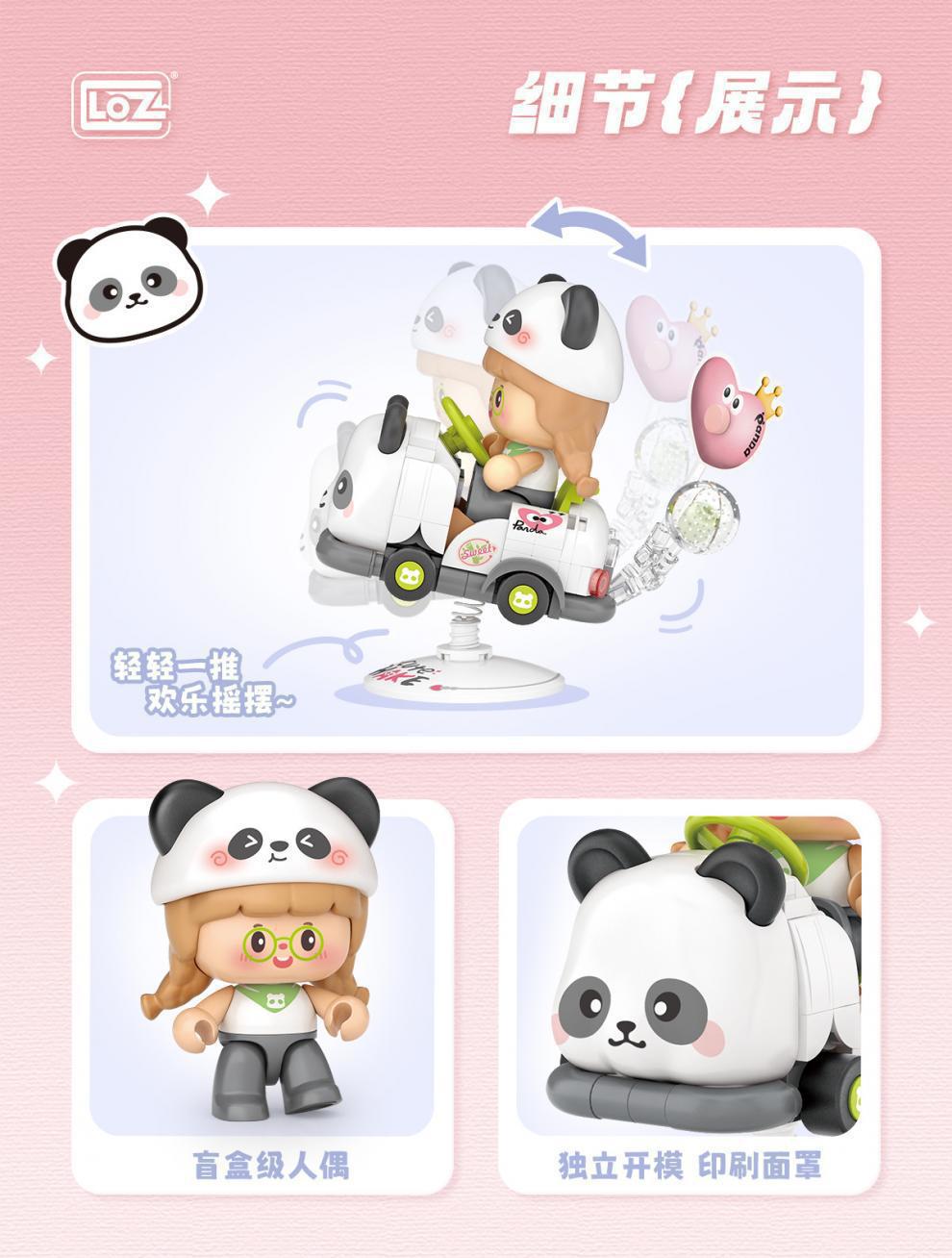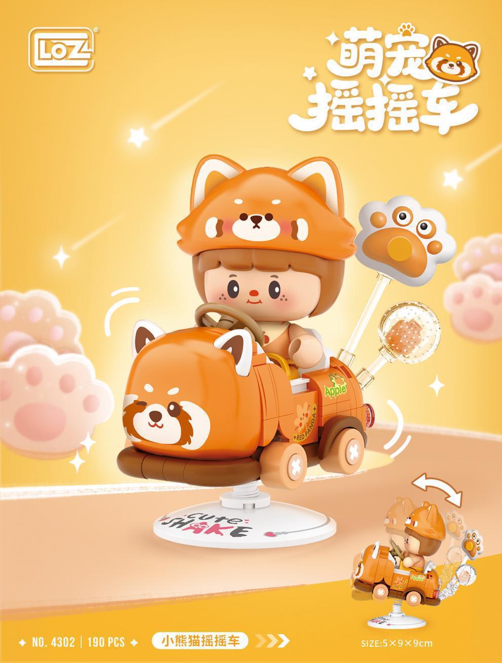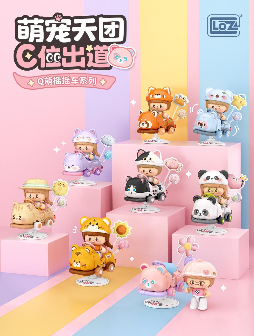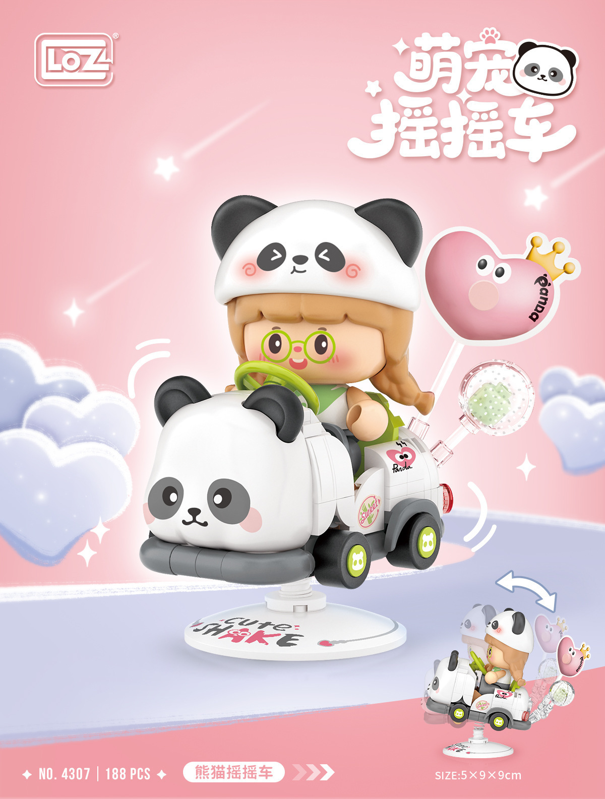 Loz4301-08 흔들리는 자동차 시리즈 새끼 고양이 팬더 동물 조립 빌딩 블록 장난감 장식품 어린이 선물 도매스토어 가기