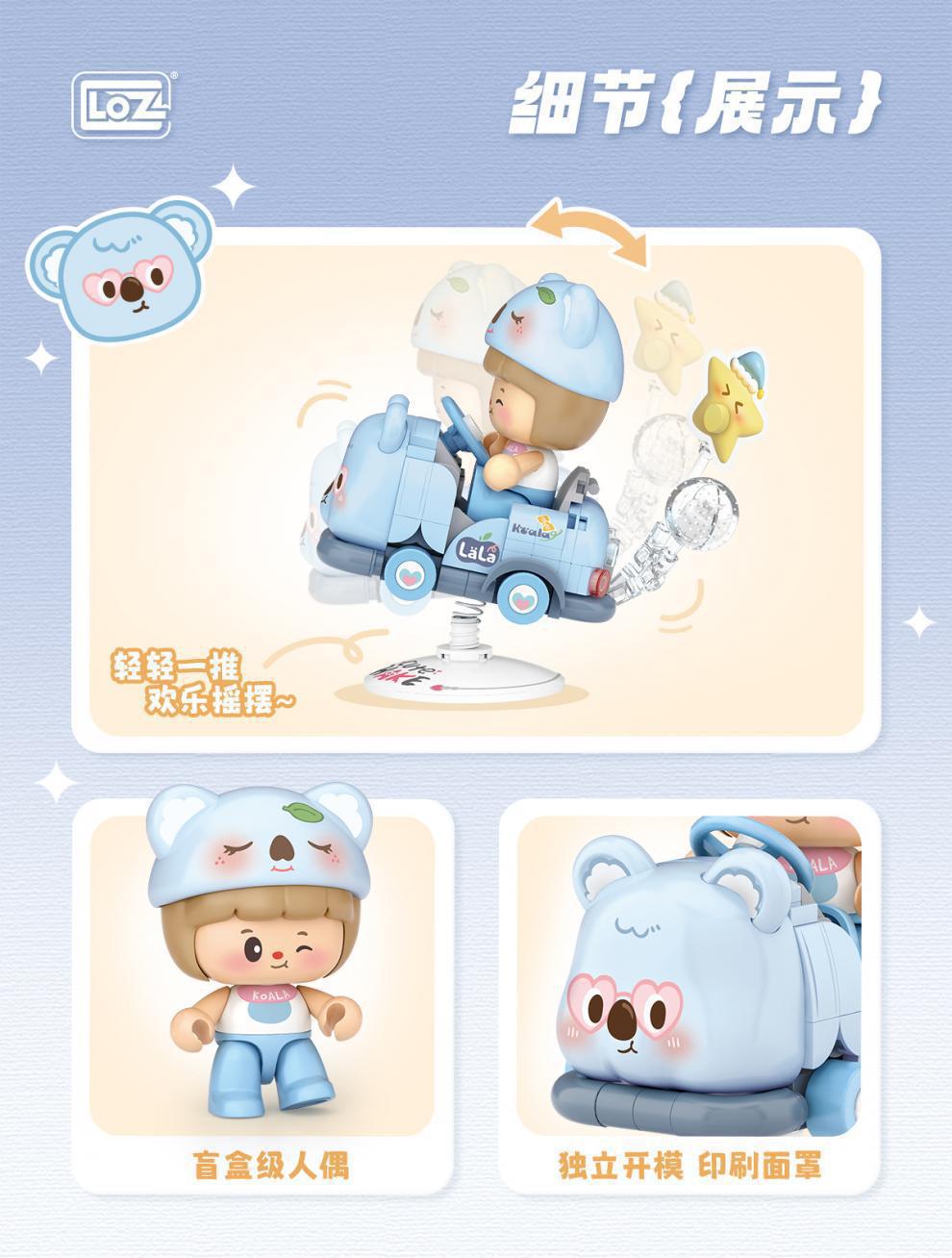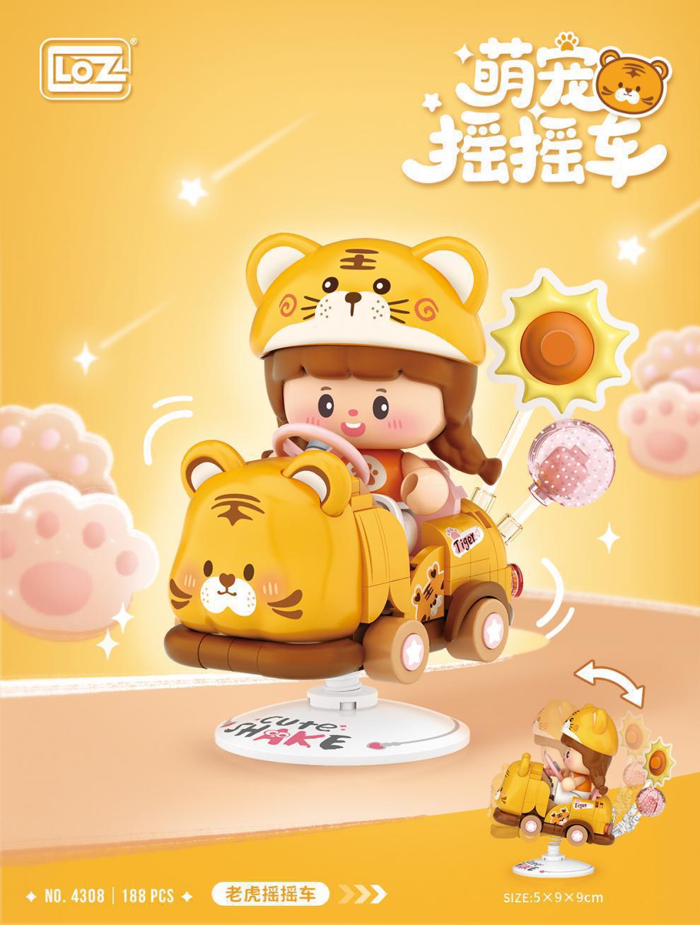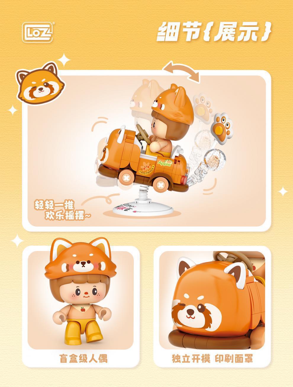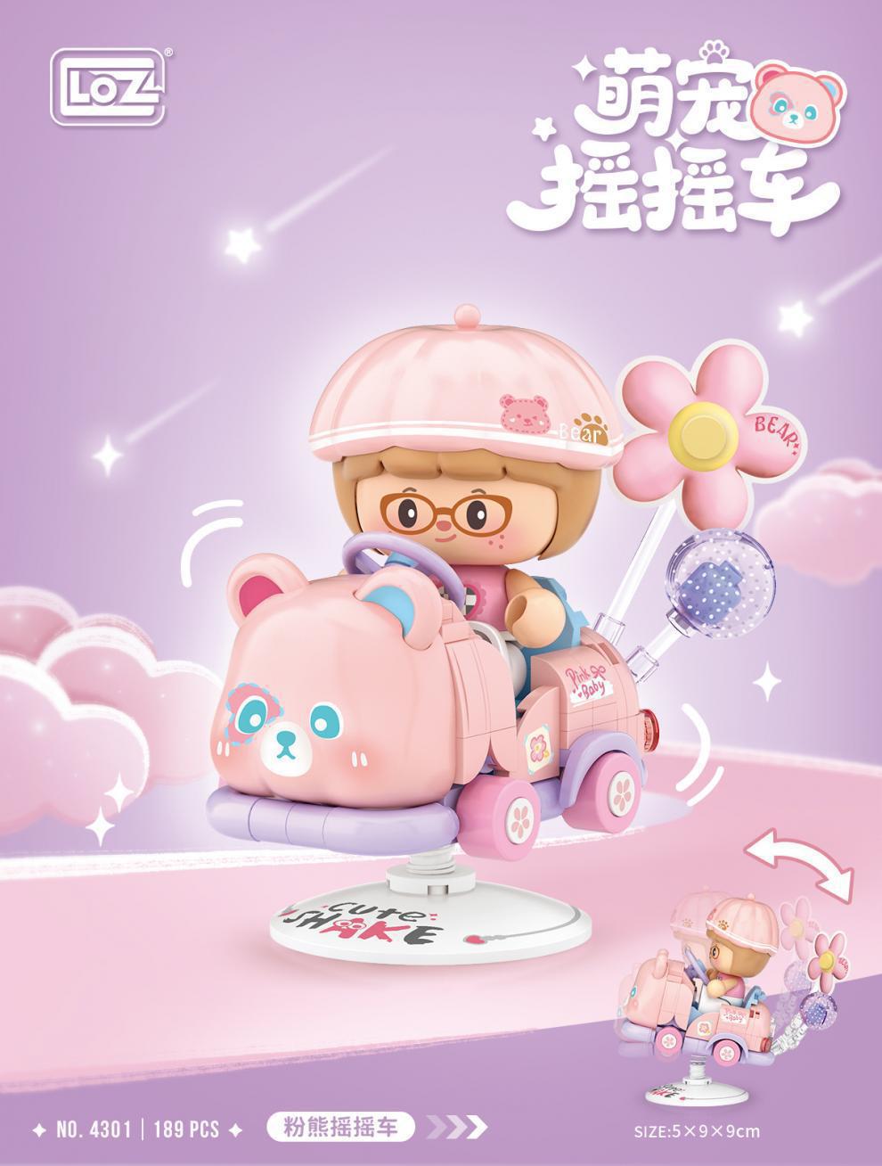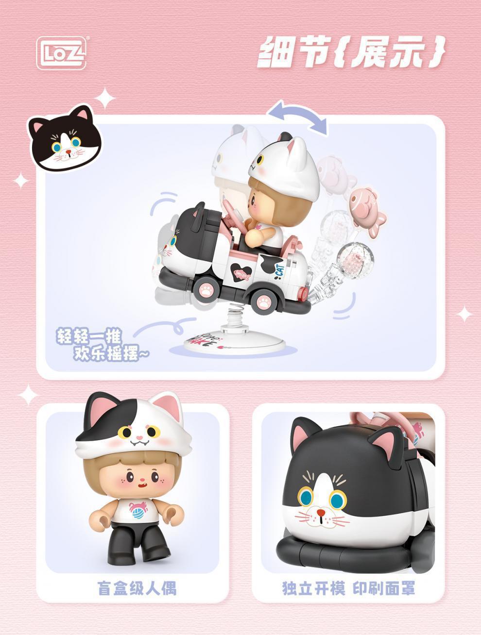 Loz4301-08 흔들리는 자동차 시리즈 새끼 고양이 팬더 동물 조립 빌딩 블록 장난감 장식품 어린이 선물 도매스토어 가기