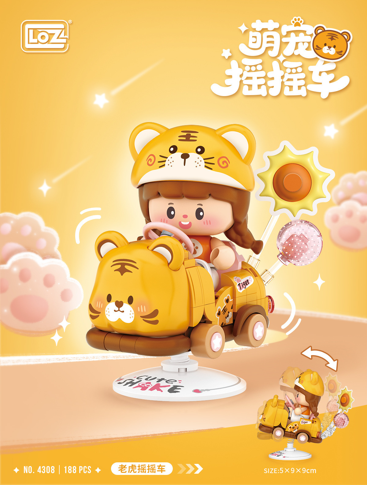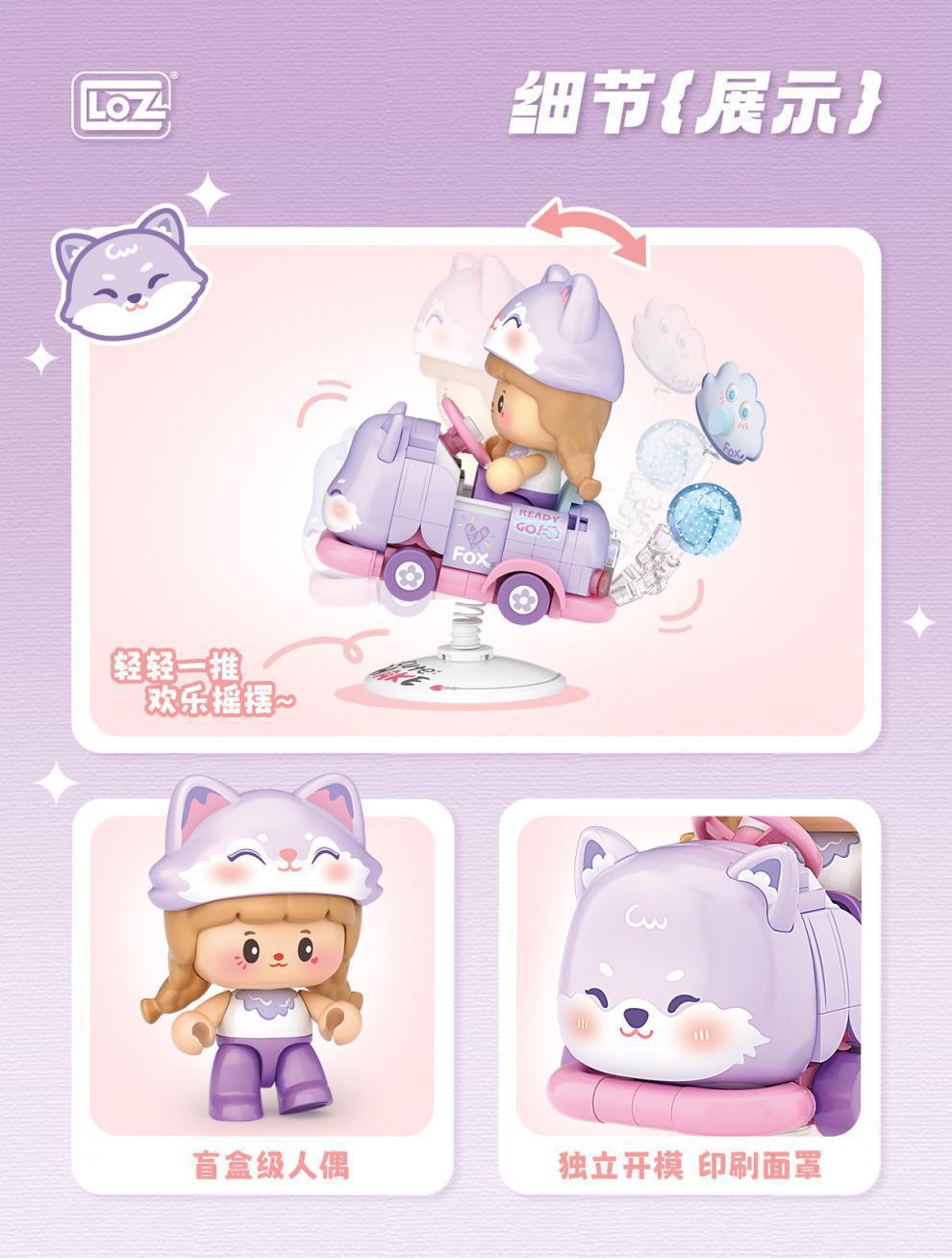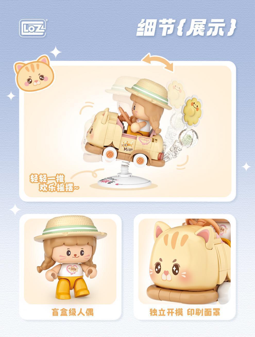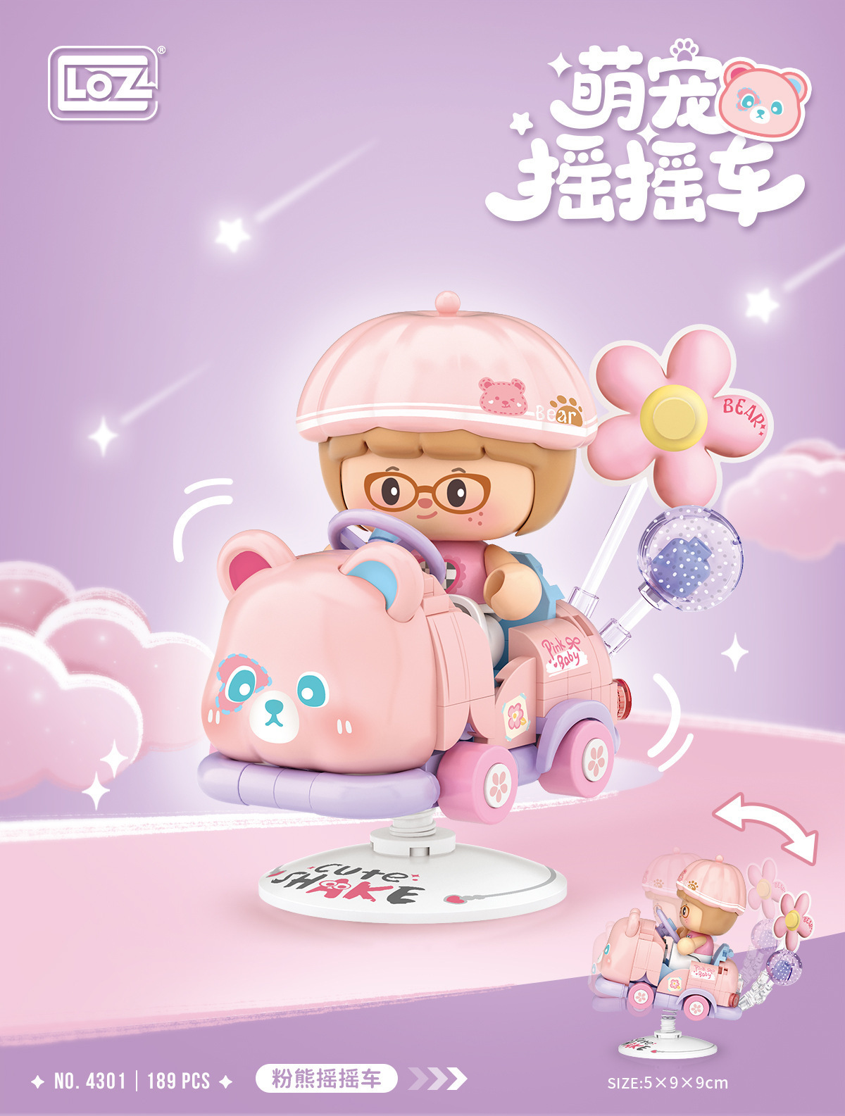 Loz4301-08 흔들리는 자동차 시리즈 새끼 고양이 팬더 동물 조립 빌딩 블록 장난감 장식품 어린이 선물 도매스토어 가기