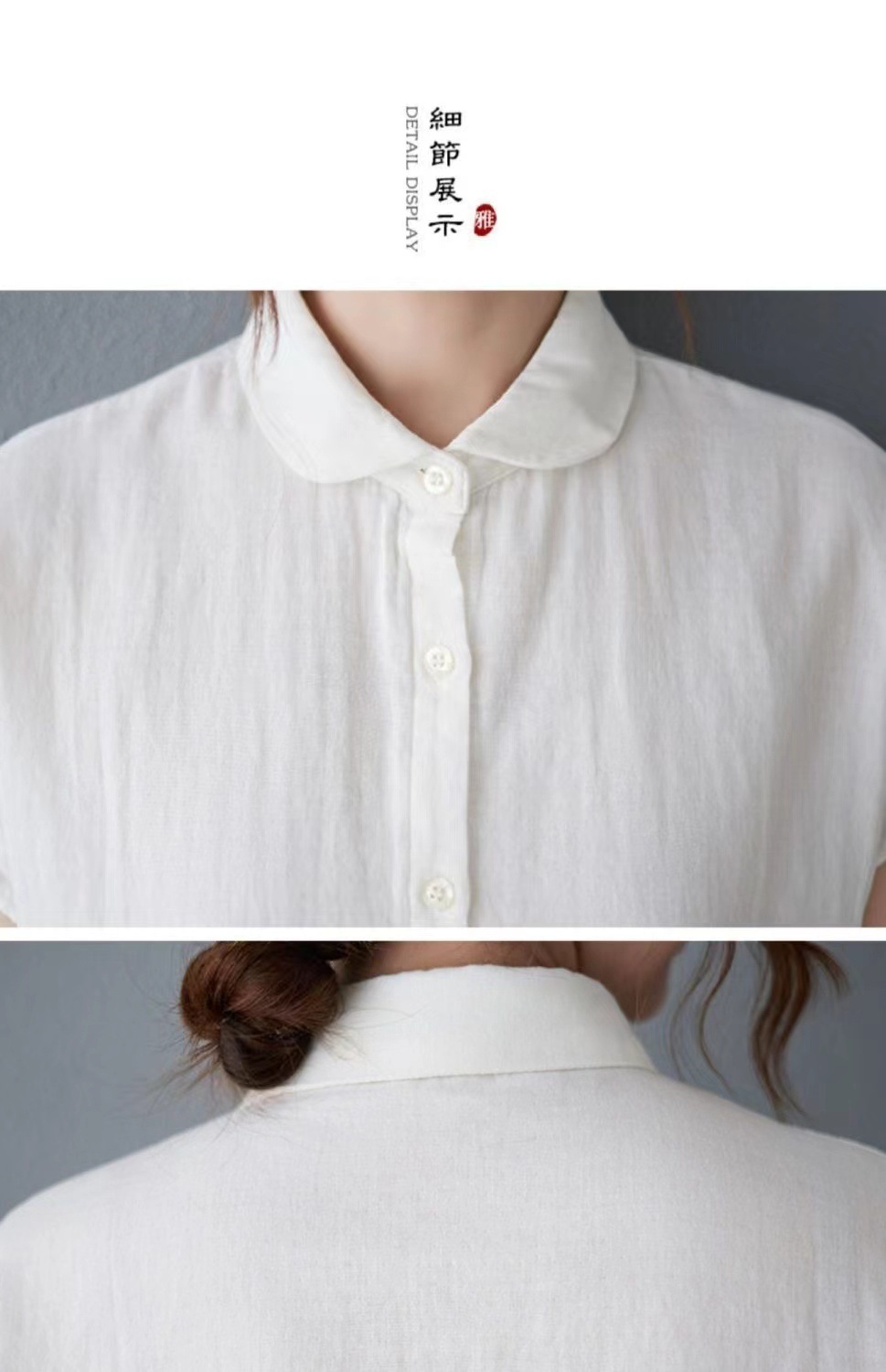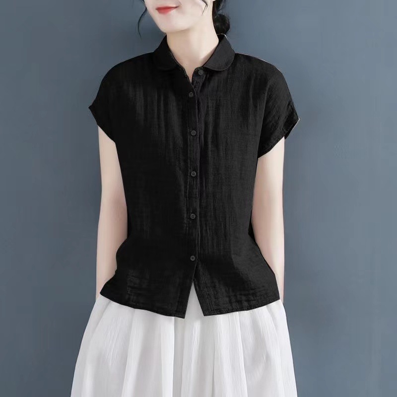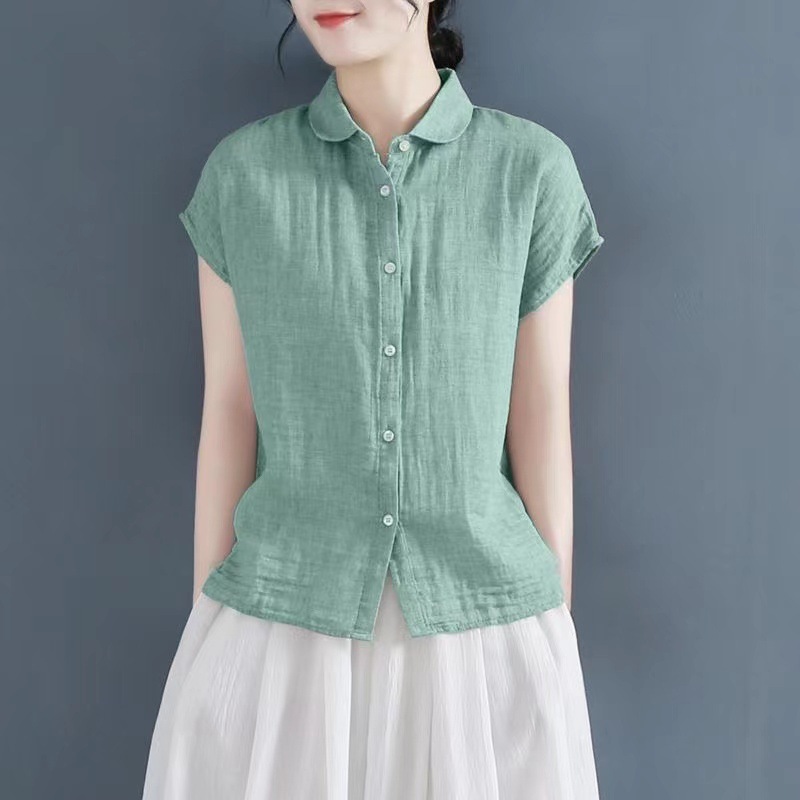 대외 무역 수출 단색 린넨 반팔 셔츠 여성 여름 캐주얼 탑 루즈 슬리밍 코튼 린넨 셔츠스토어 가기