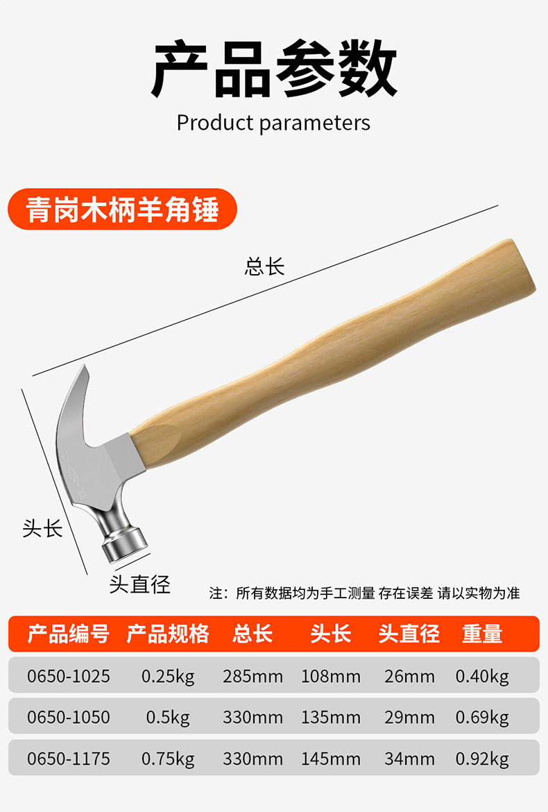 • 녹색 나무 손잡이 클로 해머 0.5kg