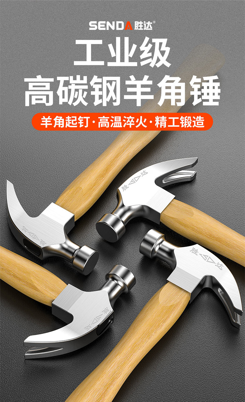 Shengda 클로 헤드 망치 목공 강철 망치 나무 손잡이 못 제거 전체 강철 작은 망치 가정용 도구 안전 망치스토어 가기