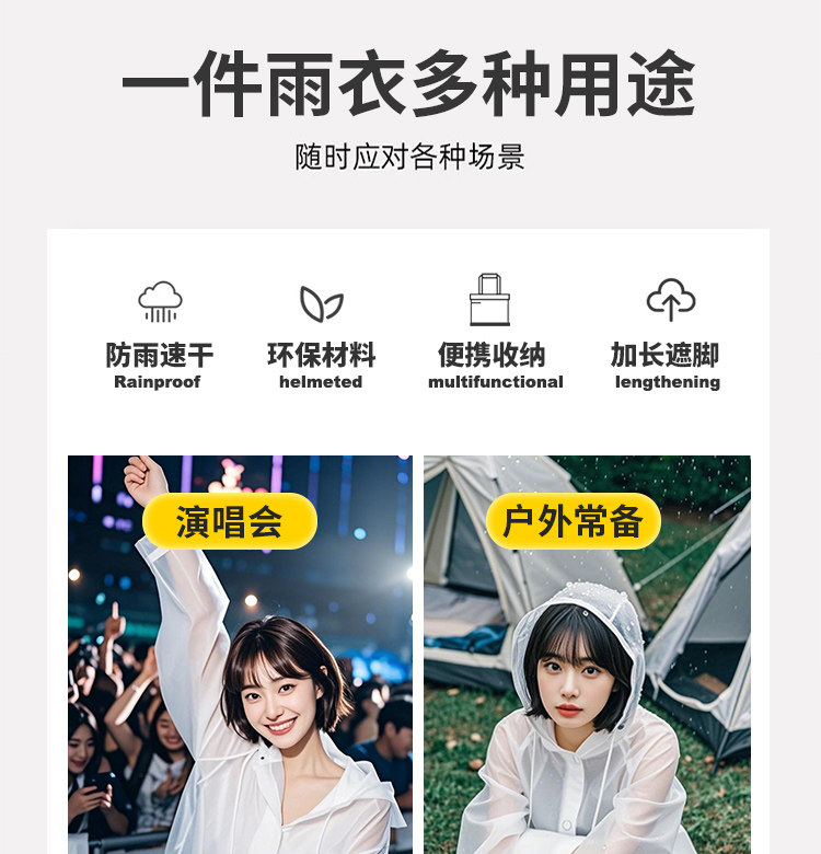 EVA 비일회용 성인용 두꺼운 야외 여행용 방수 긴형 편리한 일체형 자전거용 우비스토어 가기