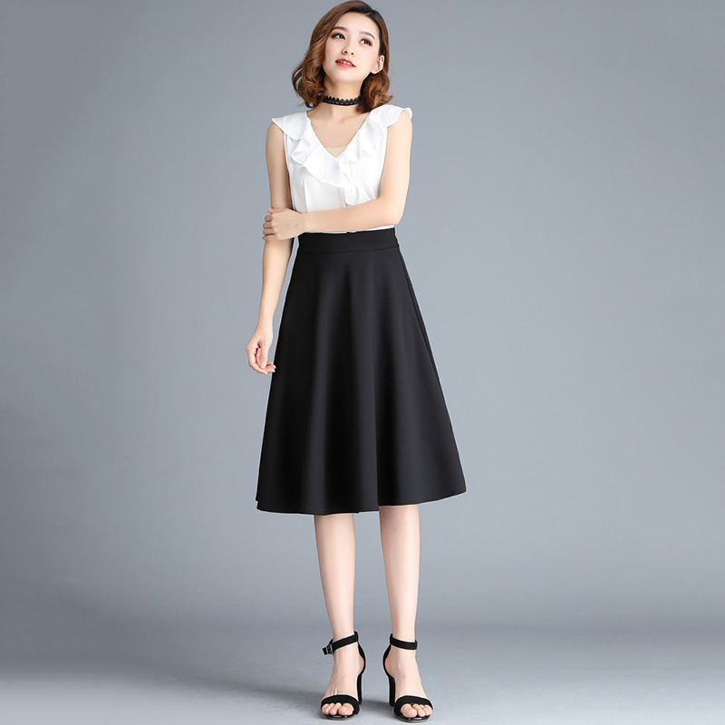 • 블랙 미디 스커트 55cm [포켓+안전바지]
