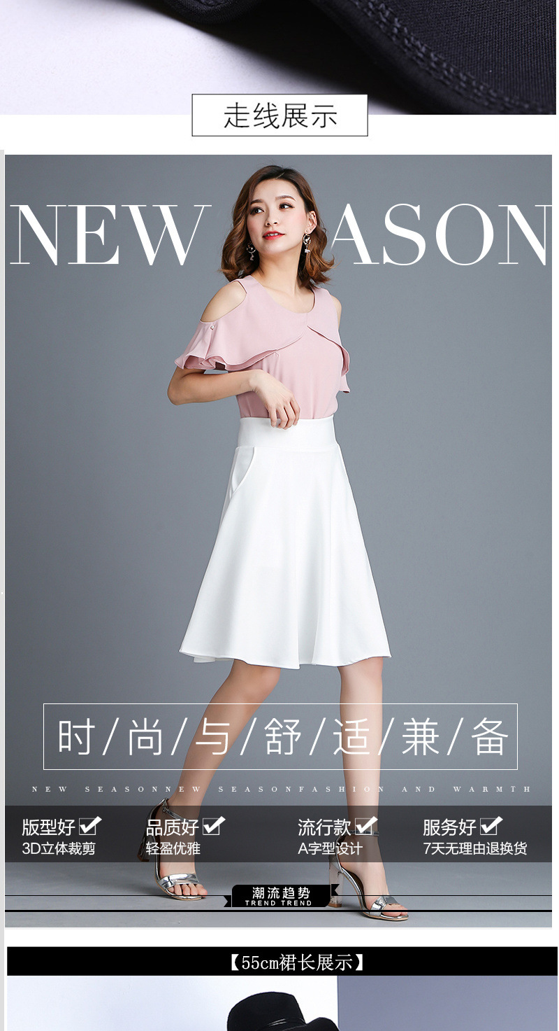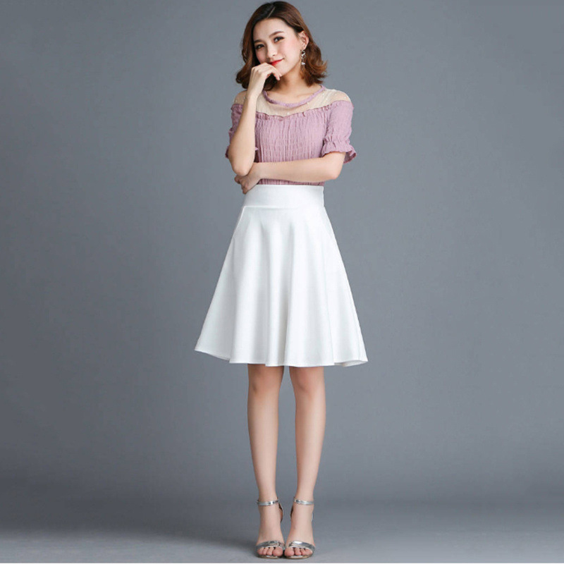 신축성 있는 허리 작은 사이즈 여성용 레이스 화이트 스커트 2025 여름 신상 쉬폰 미드길이 스커트 A라인 스커트스토어 가기