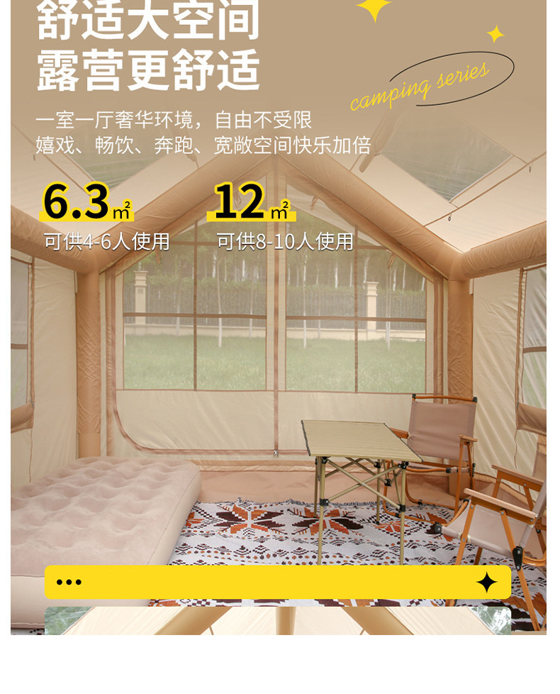 야외 풍선 텐트 휴대용 가족 캠핑 넓은 공간 빠른 개방 캠핑 방수 나들이 멀티 플레이어 텐트 자동
