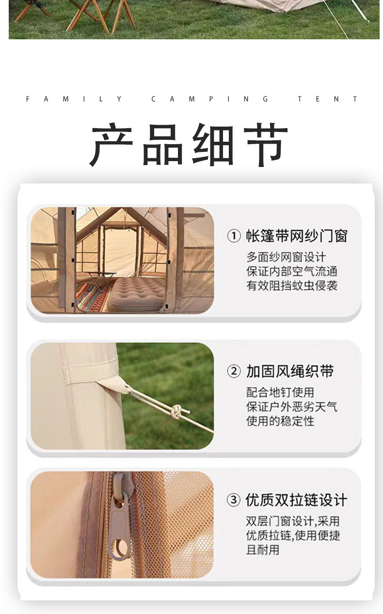 • 6.3 평방 미터 단일 도어 단일 채광창 210D 옥스포드 천