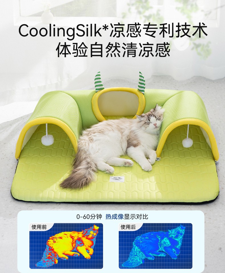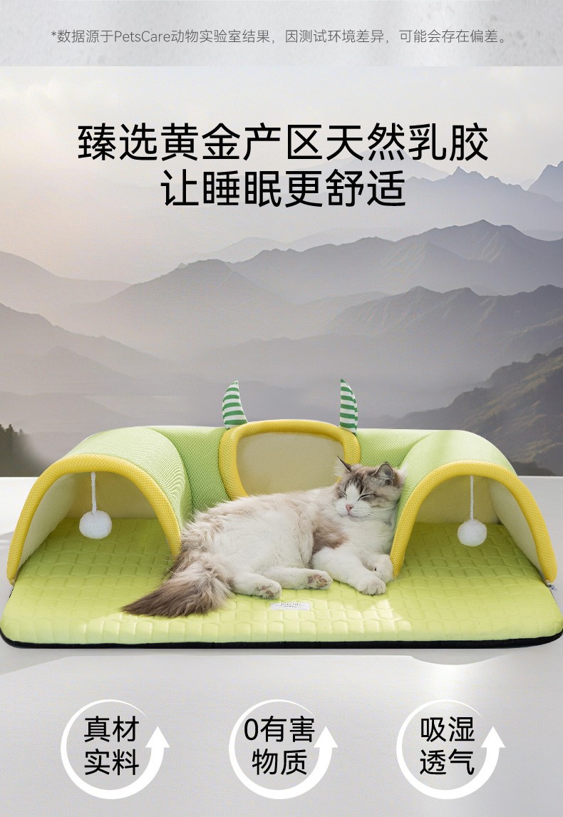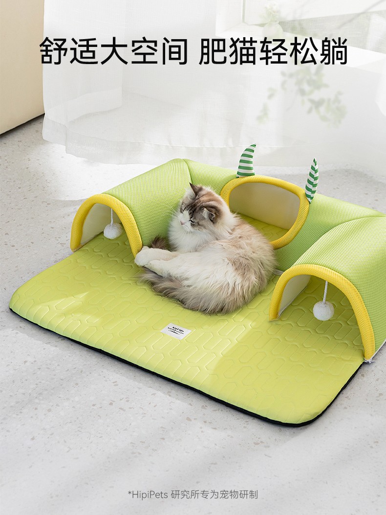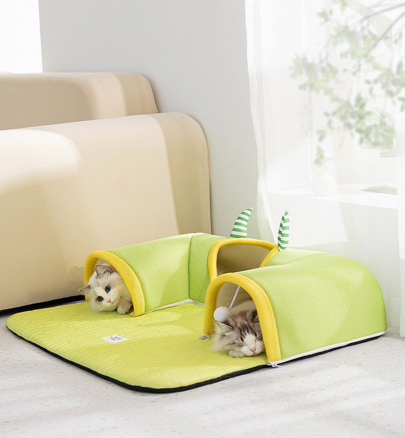 봄과 여름 큰 눈 괴물 고양이 터널 둥지 얼음 실크 시원한 라텍스 고양이 매트리스 놀이 및 수면 올인원 고양이 둥지 애완 동물 둥지
