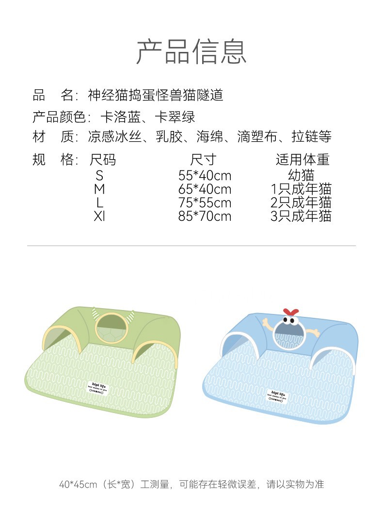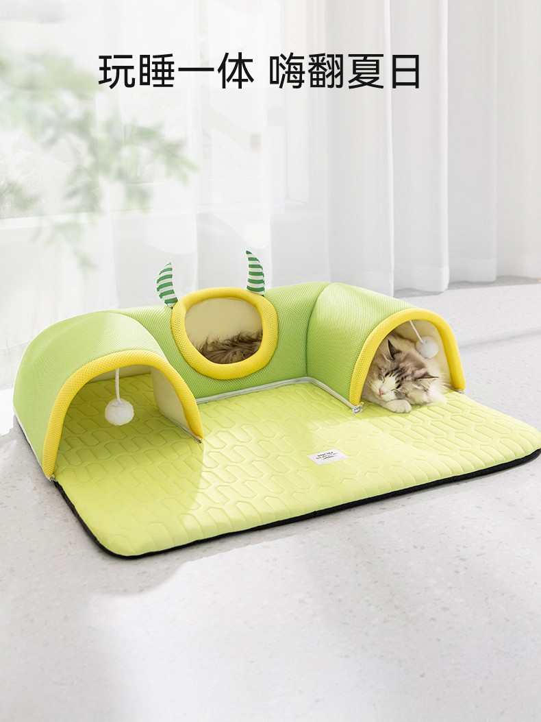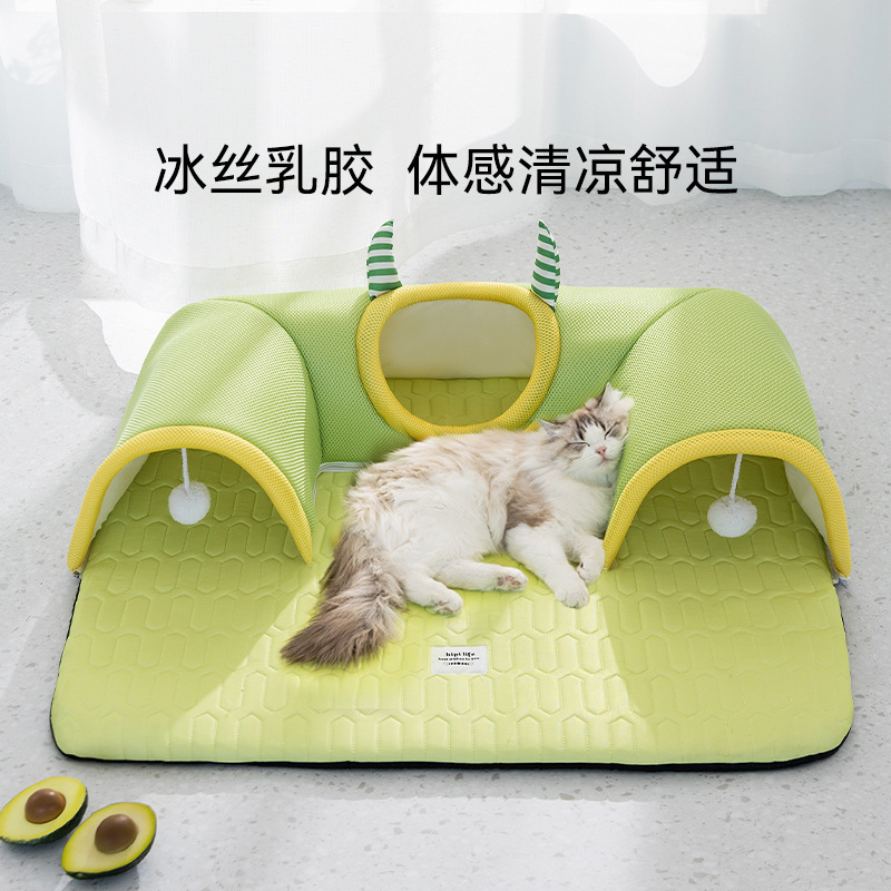봄과 여름 큰 눈 괴물 고양이 터널 둥지 얼음 실크 시원한 라텍스 고양이 매트리스 놀이 및 수면 올인원 고양이 둥지 애완 동물 둥지스토어 가기