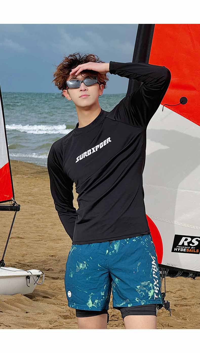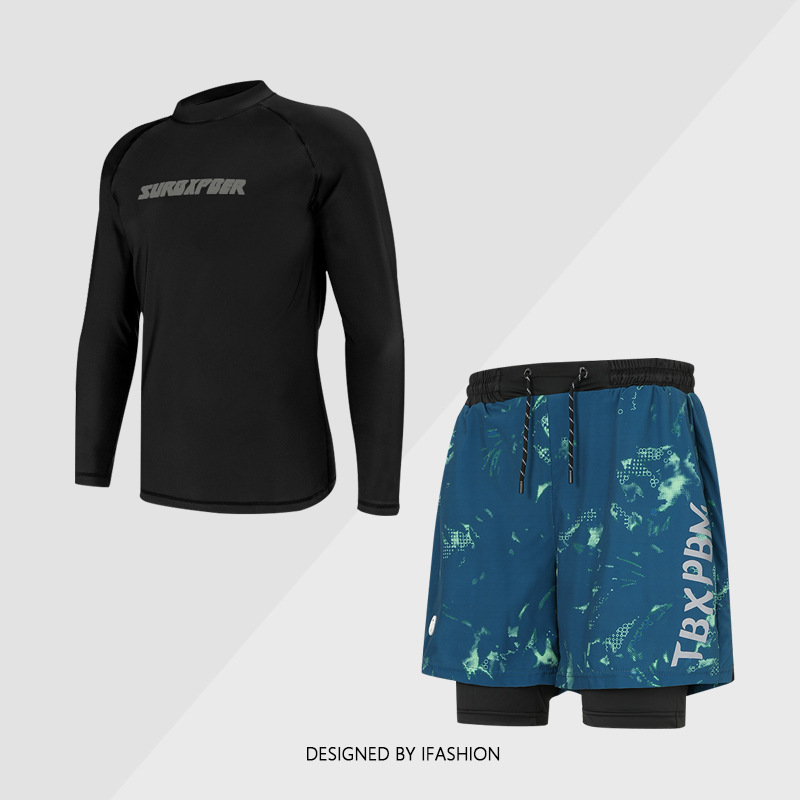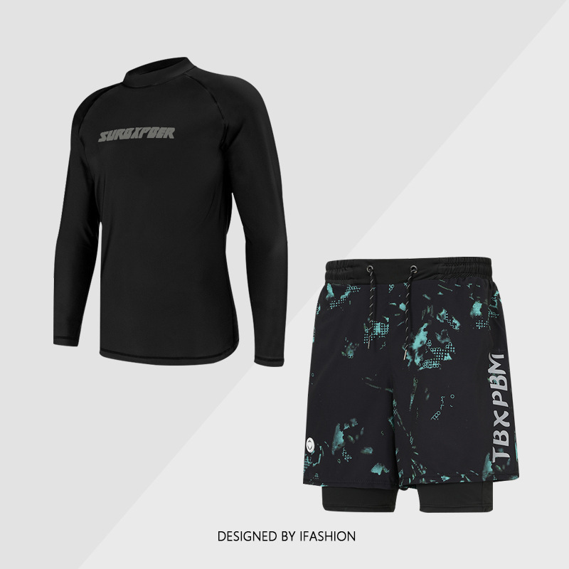비치 스플릿 긴팔 수영복 세트 2025 새로운 여름 남성과 여성의 자외선 차단 서핑 슈트 성인의 당황스러운 수영복