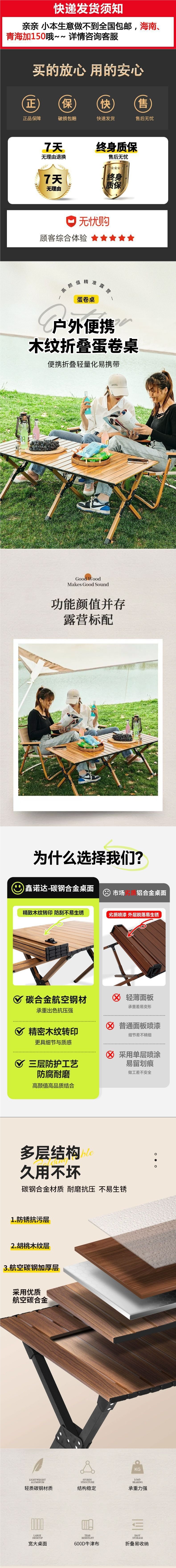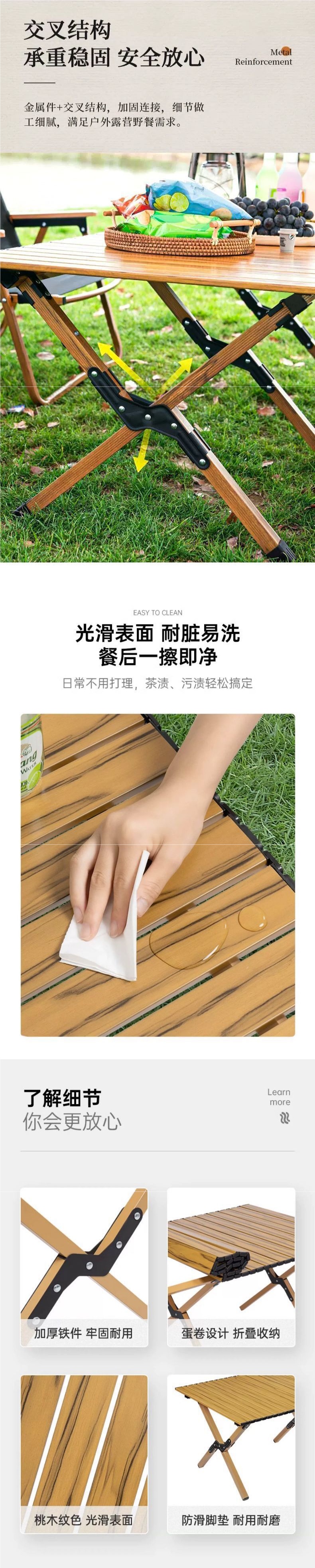 • 3배의 소재, 공장 직매 [평생 사용 가능] - 나뭇결 철합금 두꺼워진 120 대형 테이블 * 가족 나들이 모델