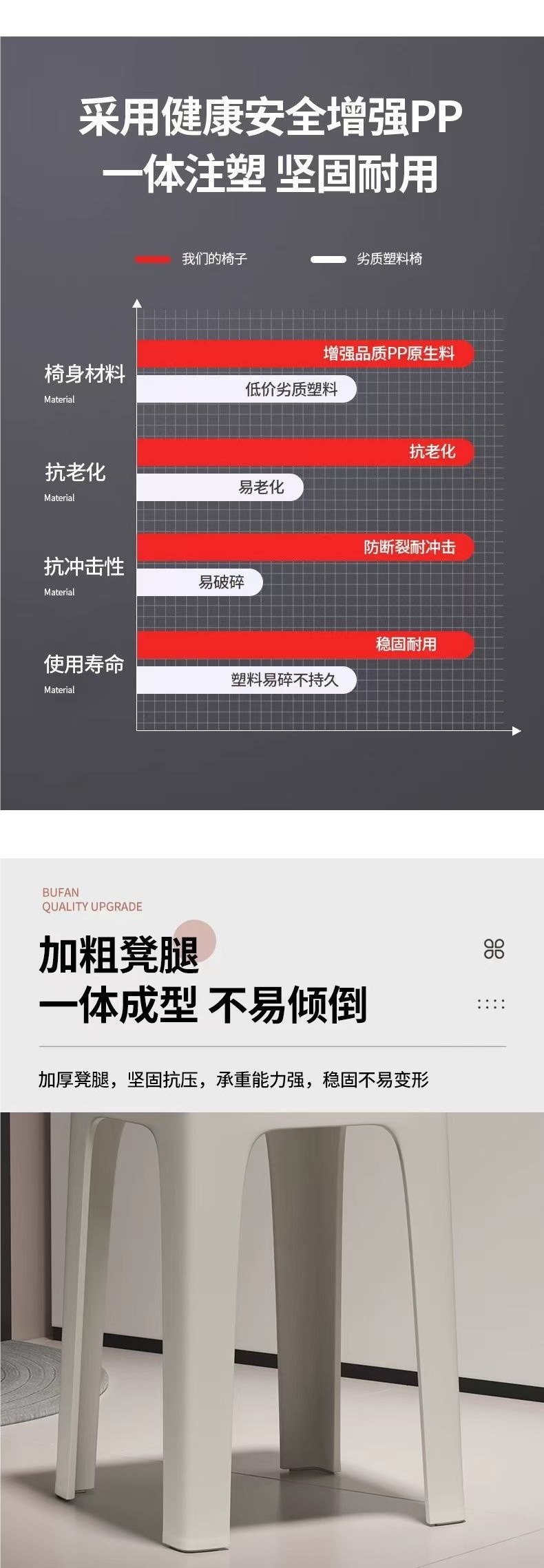 플라스틱 의자 가정용 두꺼운 쌓을 수있는 사각형 벤치 현대 간단한 강력하고 내구성있는 식탁 의자 예비 높은 의자