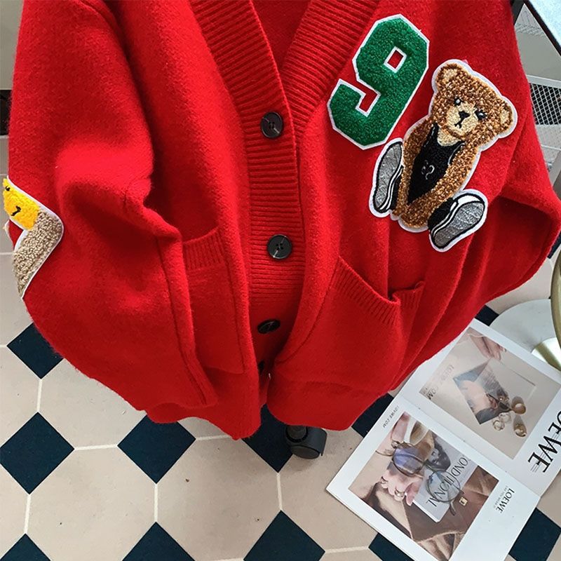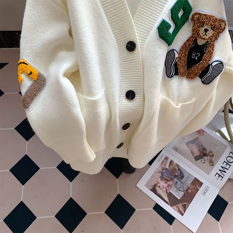 2025 새로운 가을, 겨울 일본 만화 곰 스웨터 여성 느슨한 대학 스타일 탑 니트 카디건 자켓스토어 가기