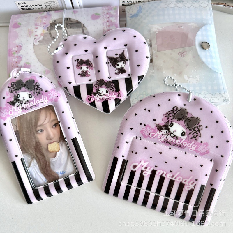 귀여운 쿨로미 파우더 블랙 카드 홀더 가로 및 세로 버전 3inch 1.0inch 카드 홀더 버스 카드 식사 카드 아이돌 카드 보호 커버스토어 가기