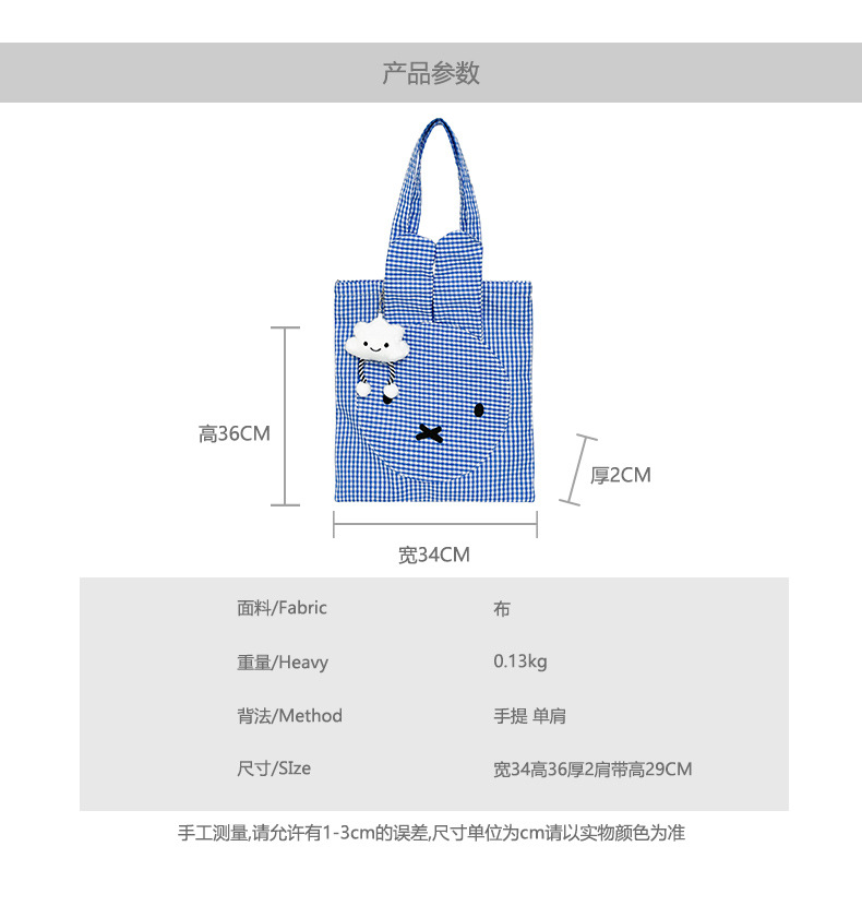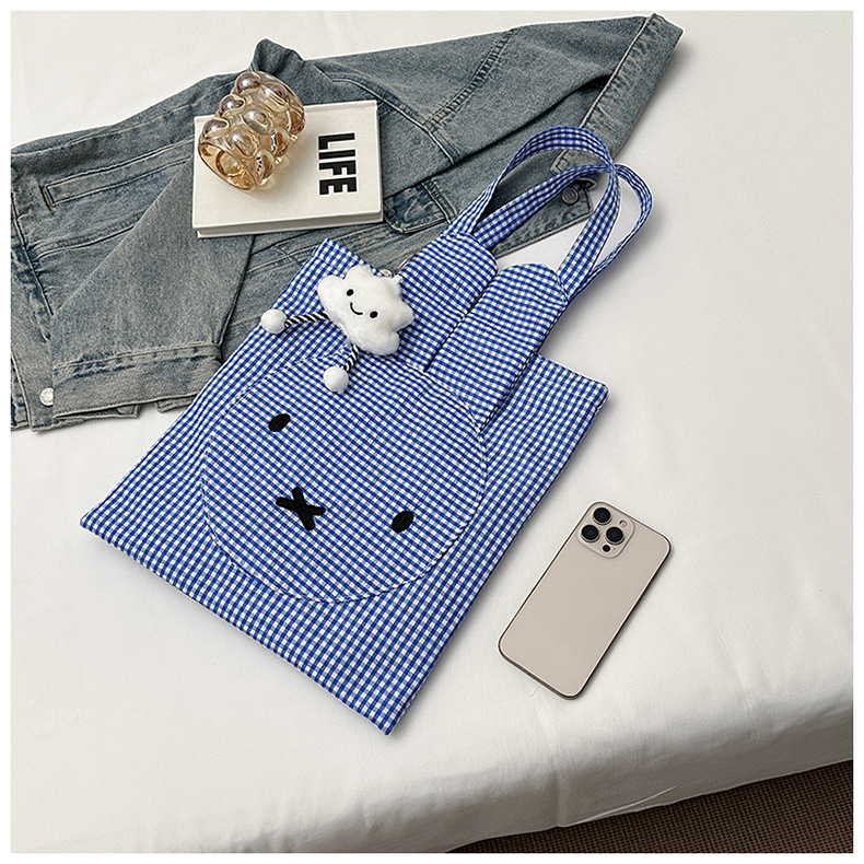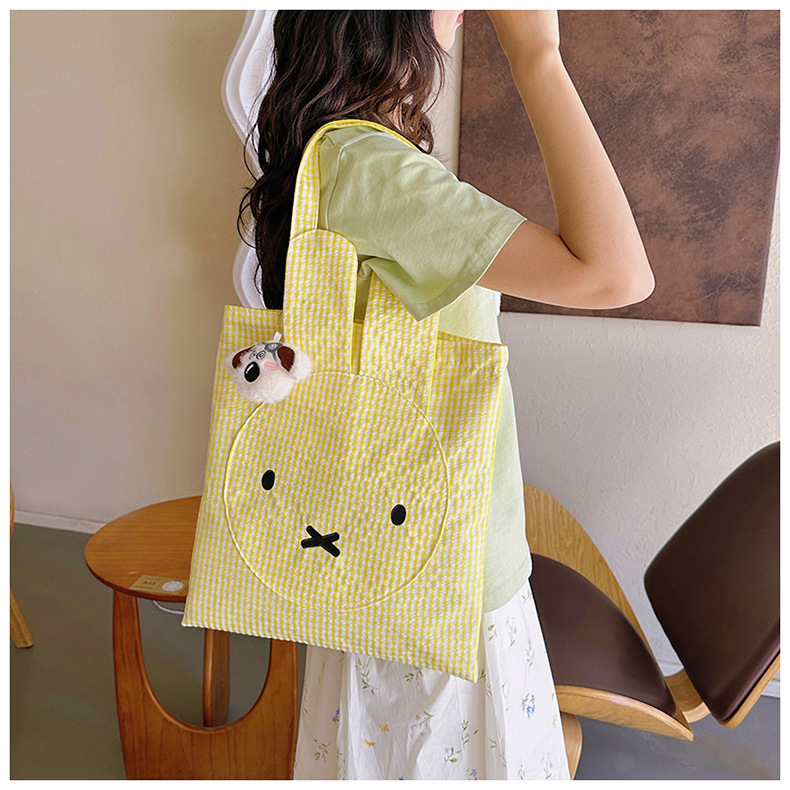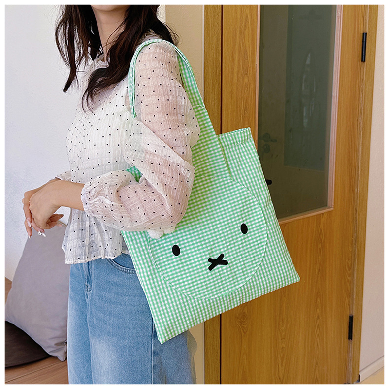 2025 새로운 스타일 귀여운 격자 무늬 미피 토끼 어깨 대용량 통근 패션 토트 캐주얼 쇼핑 가방