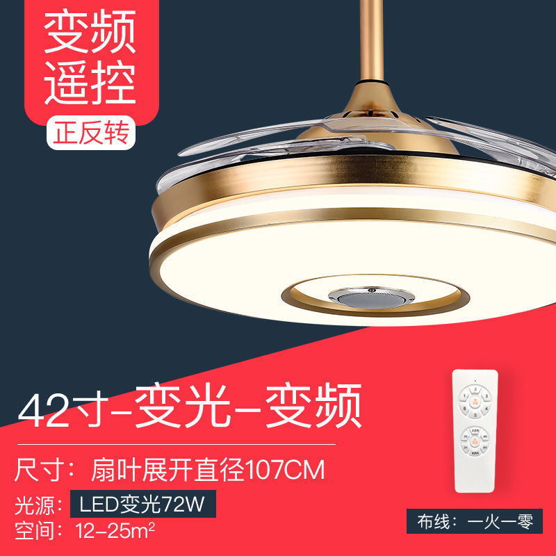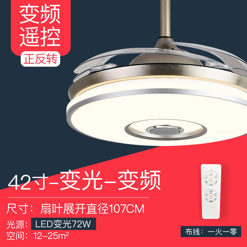 보이지 않는 팬 램프 홈 거실 침실 블루투스 음악 가변 주파수 통합 LED 천장 팬 램프 공장 도매