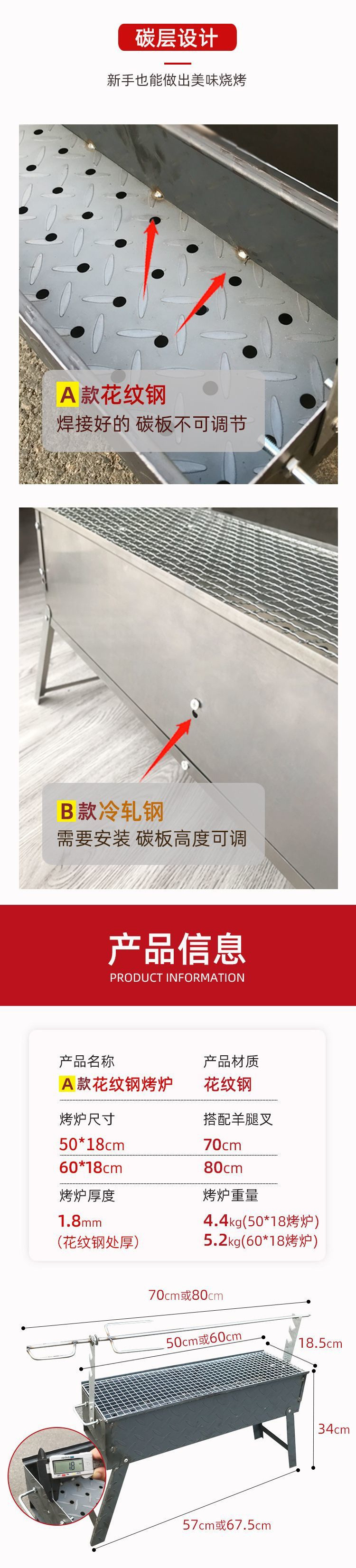 • 냉간 압연 강철 양고기 다리 난로 80*24cm [얇은]