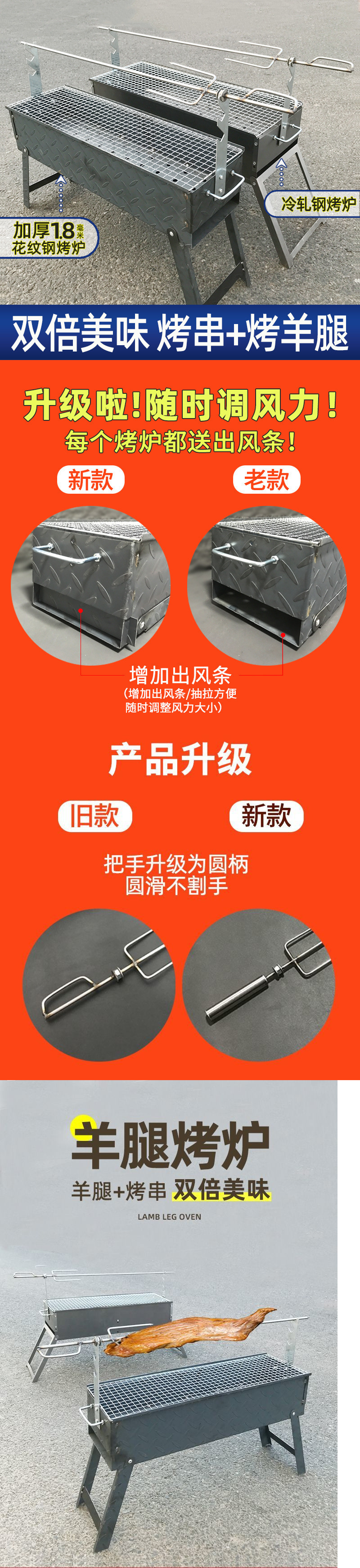 두꺼운 양고기 다리구이 스토브, 접이식 바베큐 그릴, 야외 양고기 꼬치, 상업용 숯불 그릴, 양갈비, 닭고기 및 토끼 바베큐 그릴