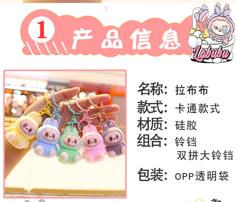 새로운 플록 동물 열쇠 고리 Douyin 라이브 라부 블록 인형 가방 펜던트 크리 에이 티브 작은 선물 펜던트