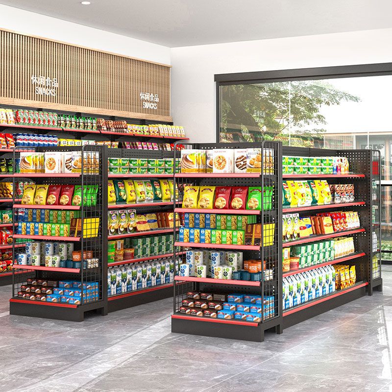 슈퍼마켓 선반 디스플레이 랙 편의점 다층 선반 스낵바 단면 및 양면 랙 스낵 약국 보관 랙