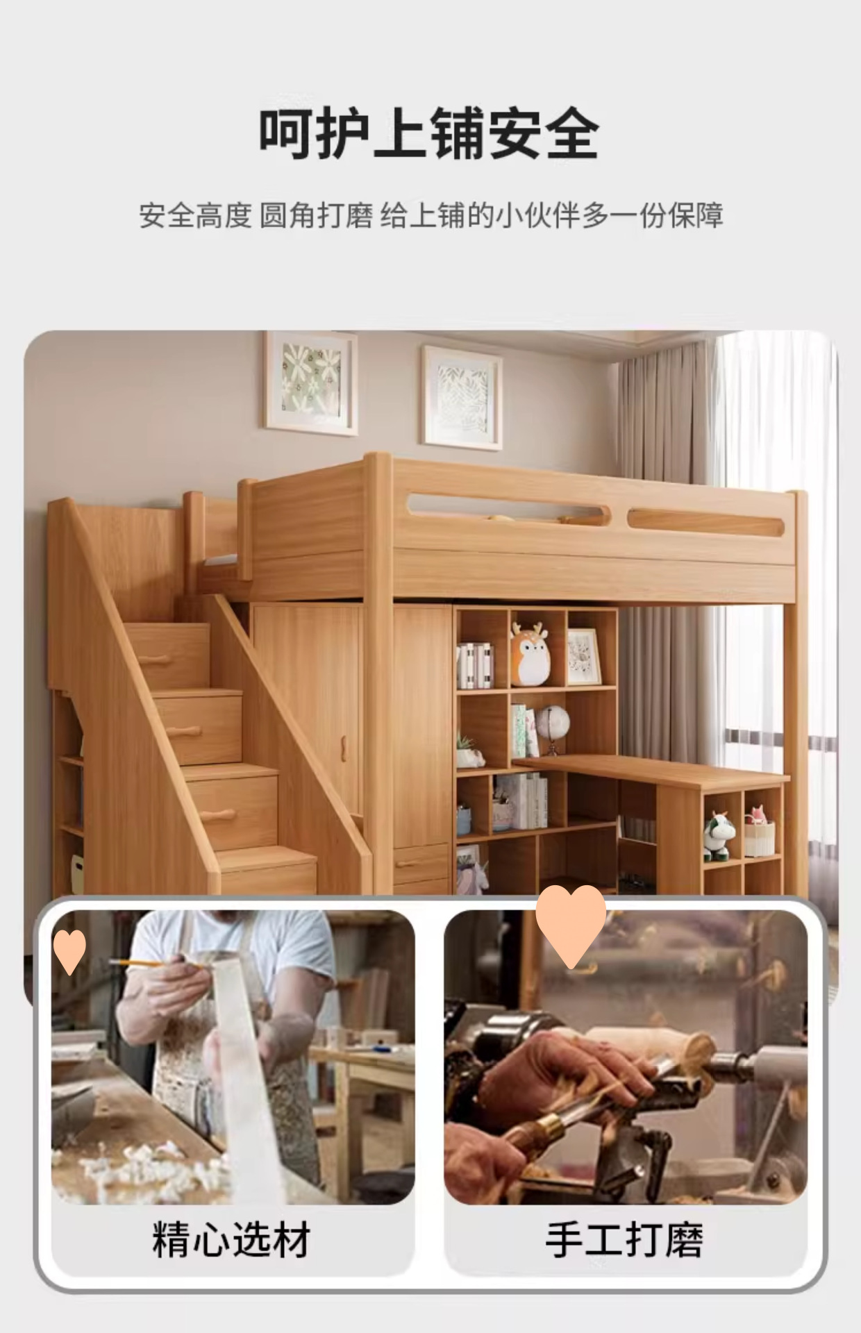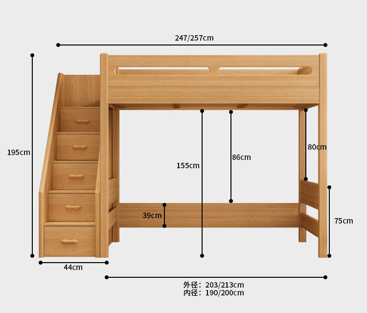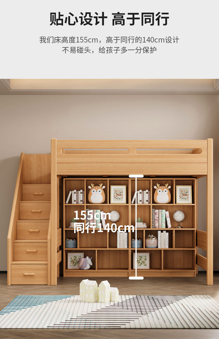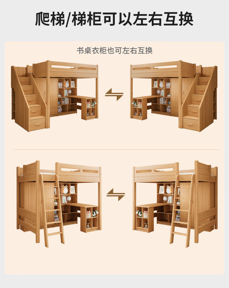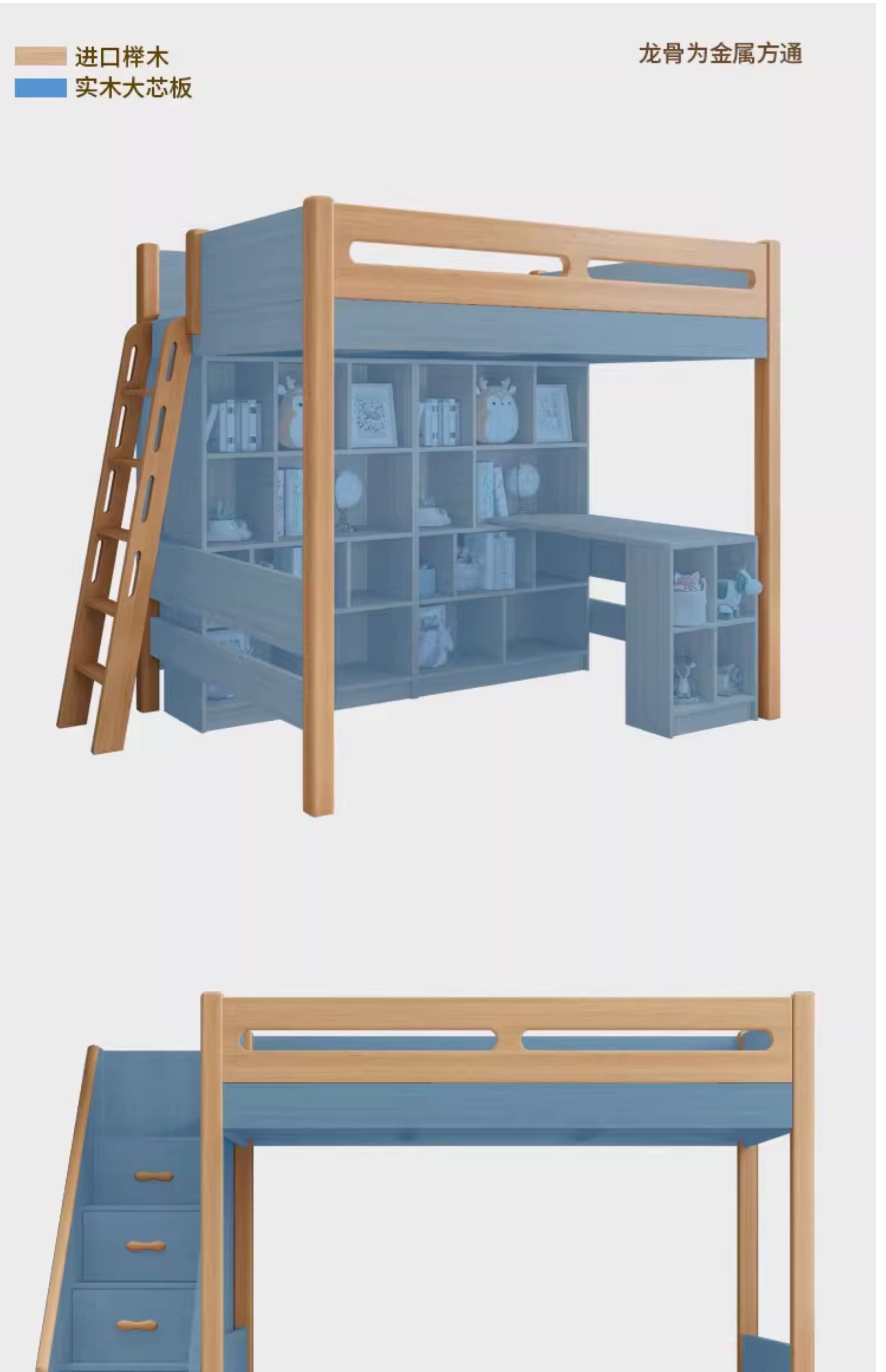 • 측면 경사 사다리 + 로프트 침대 + 책상 캐비닛 + 책장(직선 사다리/경사 사다리 옵션)