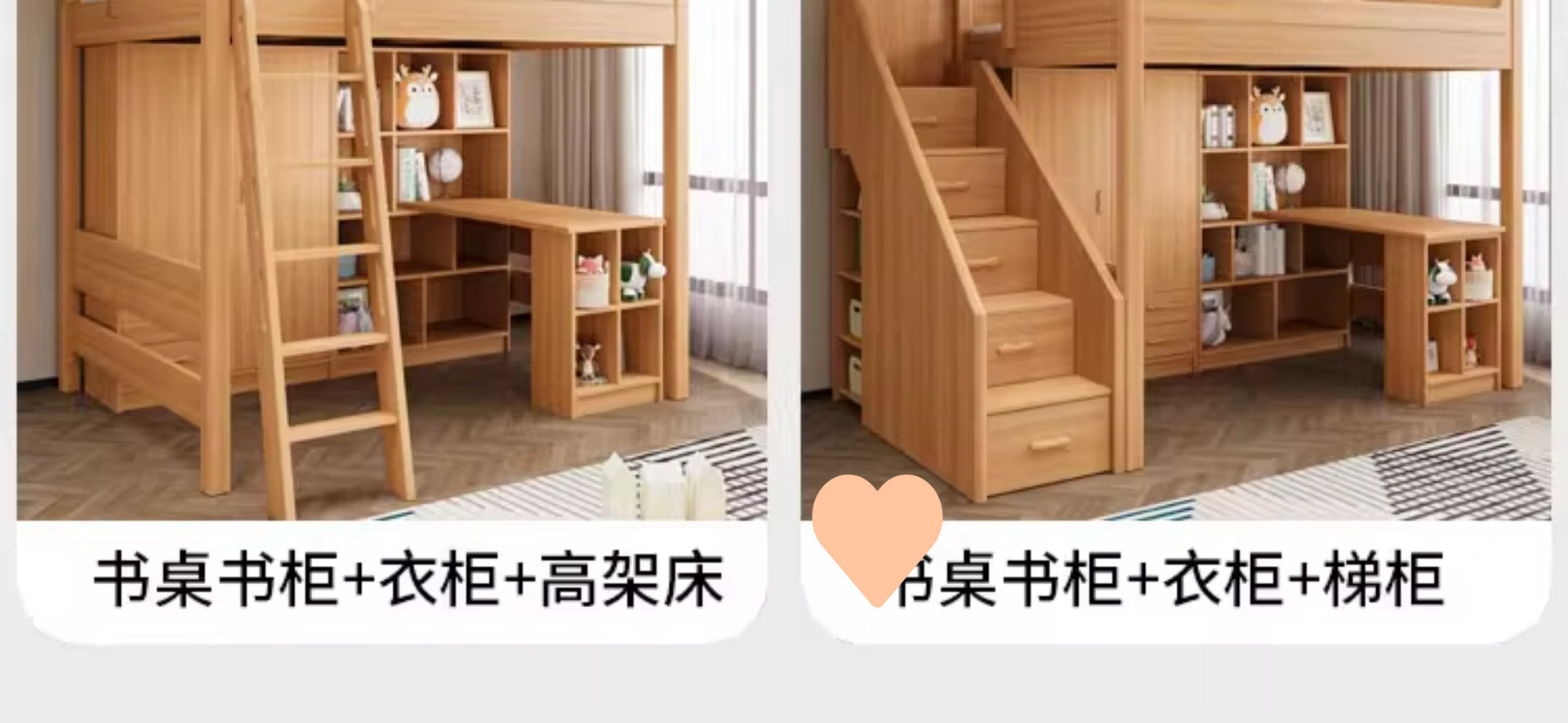 • 로프트 침대 + 사다리 캐비닛 + 책상 및 책장