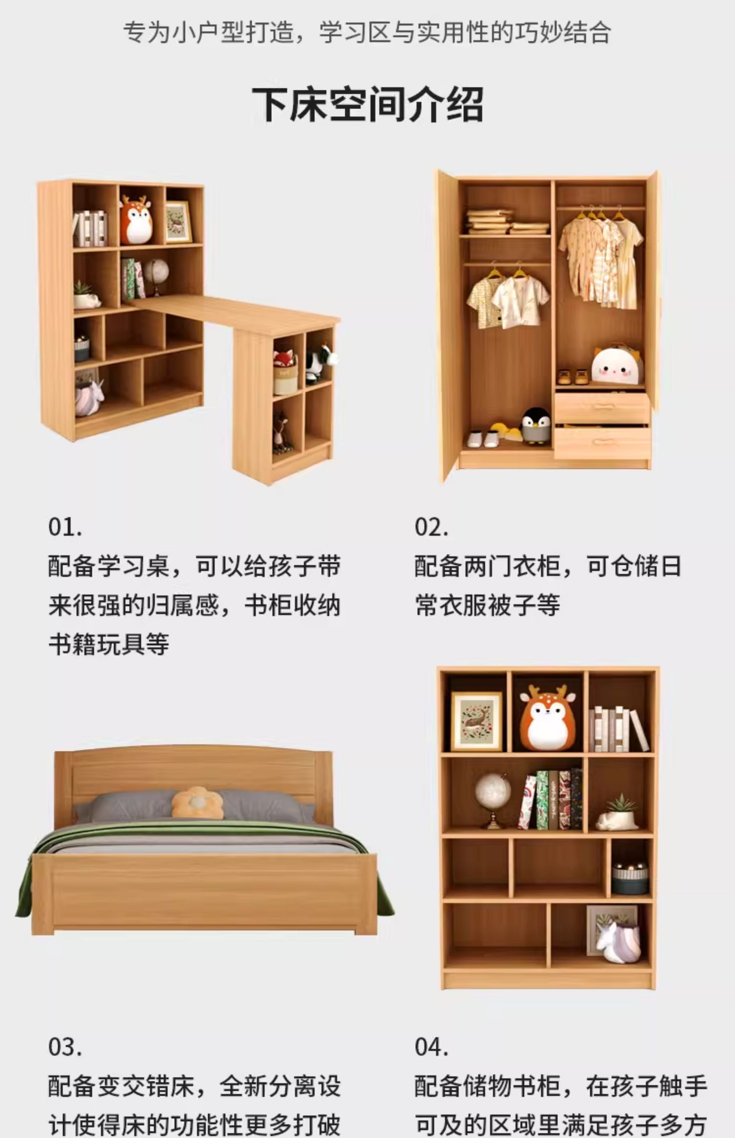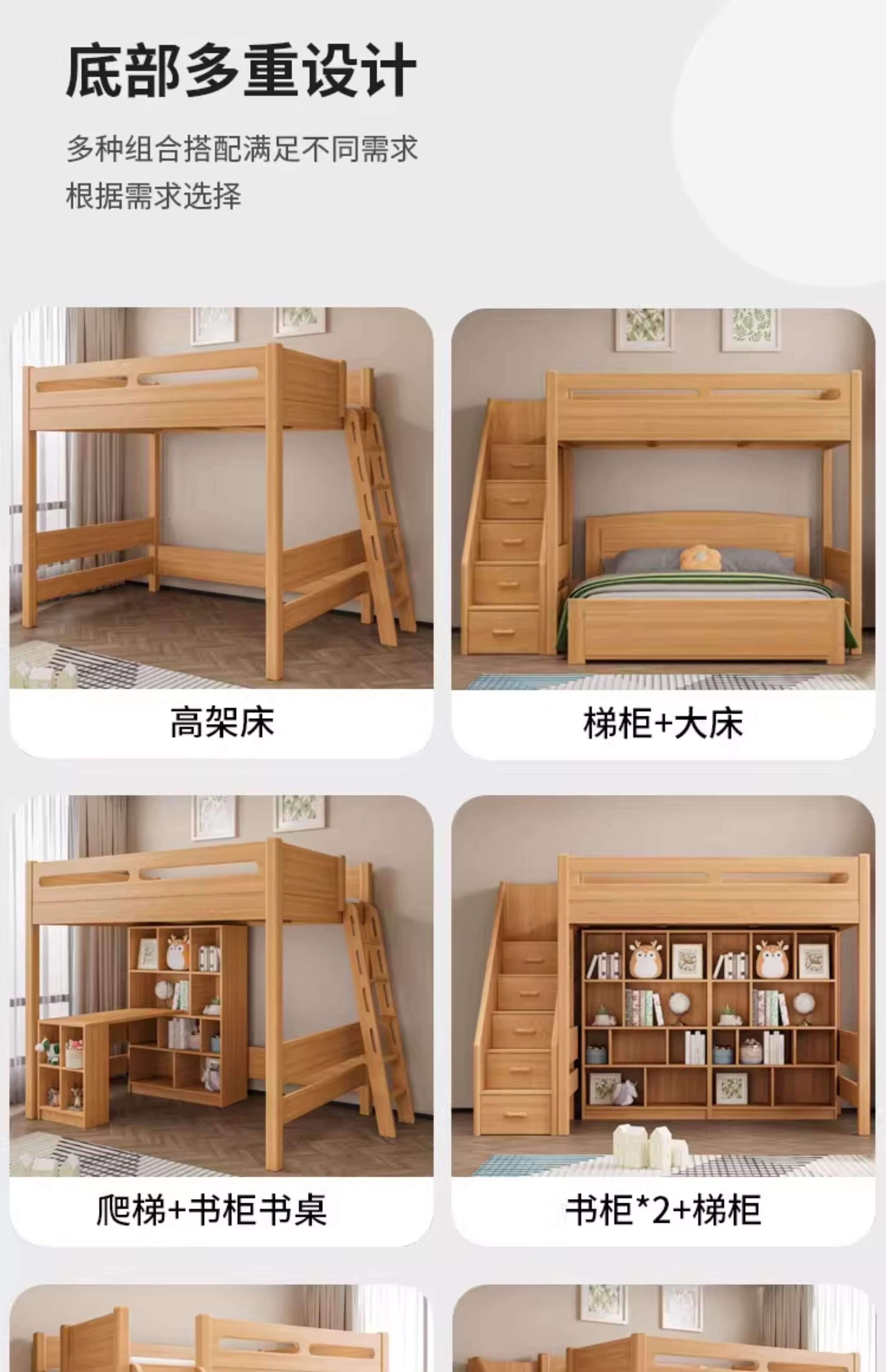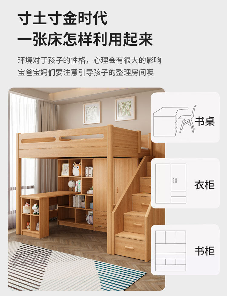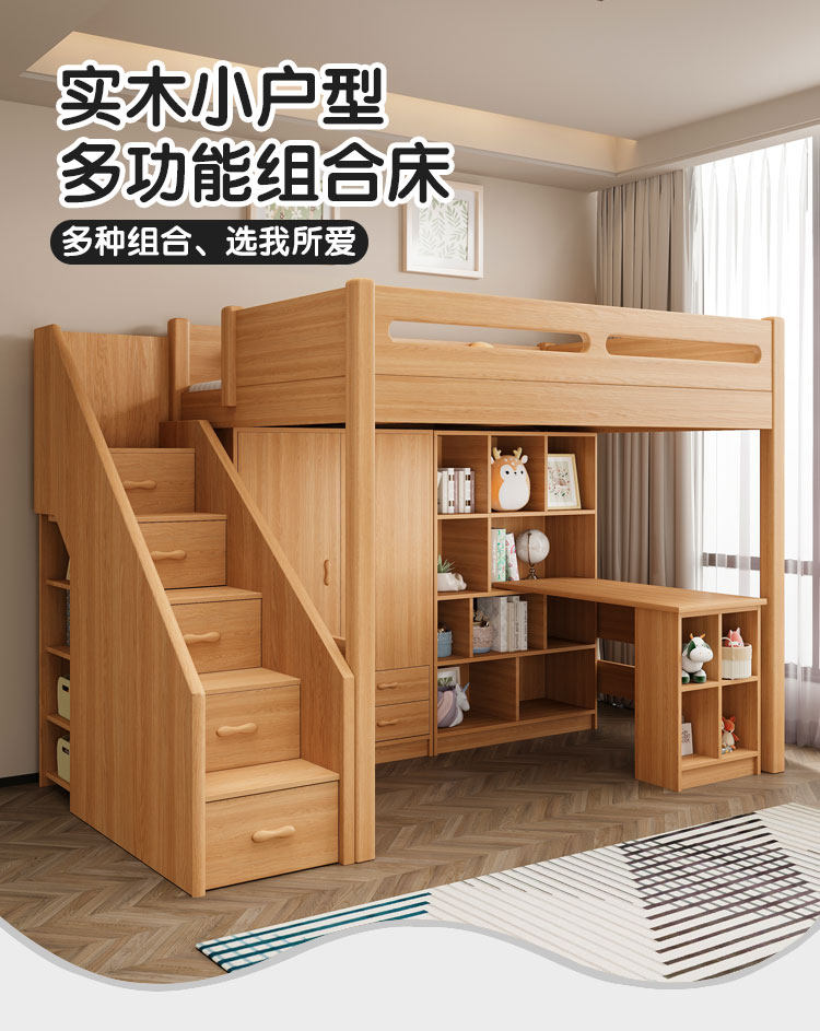 침대와 책상 결합 침대, 어린이 침대와 책상 일체형 소형 이층 침대, 원목 옷장, 이층 침대, 높은 침대