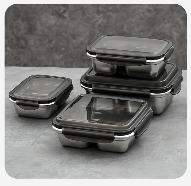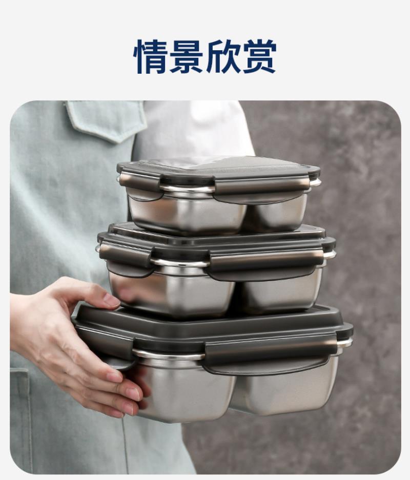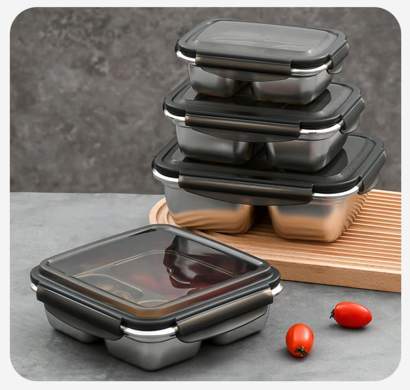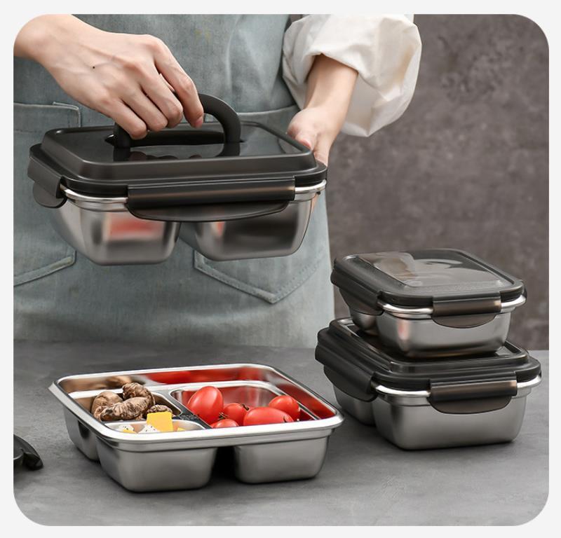 칸막이 도시락 상자 가정용 냉장고 보관 상자 예비 도시락 상자 버클 밀봉 스테인레스 스틸 크리스퍼 상자스토어 가기