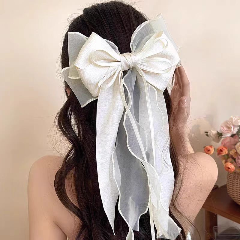 여성용 여성용 초대형 자스민 화이트 메쉬 보우 리본 머리핀 2025 새로운 봄 여름 하이 엔드 스프링 클립