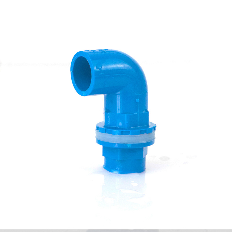 PVC 수도관 액세서리 엘보우 3방향 4방향 직접 물고기 탱크 상부 및 하부 급수 파이프 피팅 플라스틱 조인트 접착제 파란색