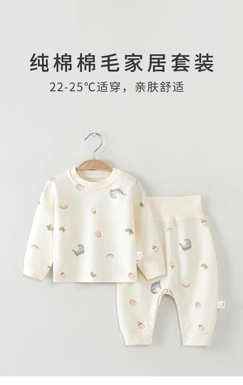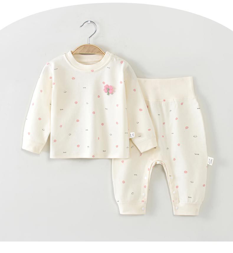 아기 보온 속옷 세트, 가을 옷과 긴 바지, 순면 유아용 하이웨이스트 배 보호복, 아동용 스플릿 베이스 레이어, 봄, 가을스토어 가기
